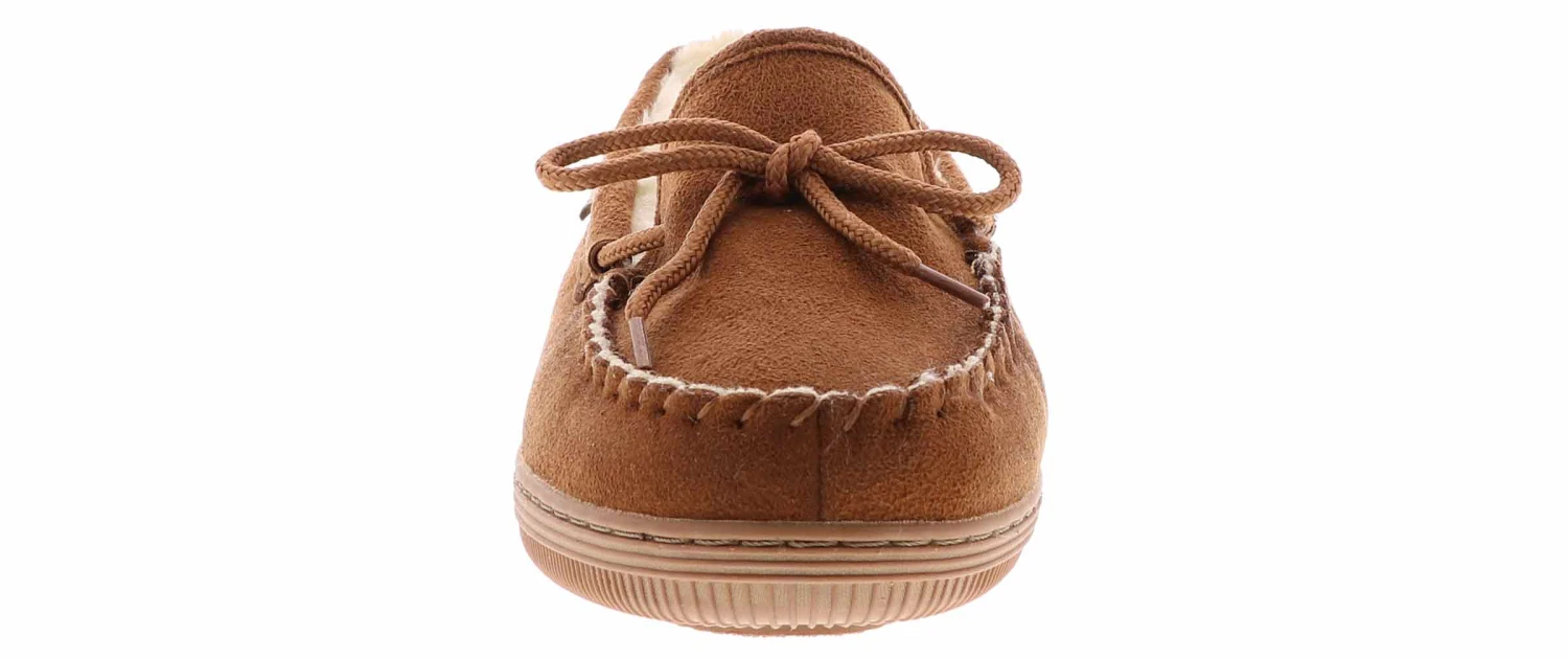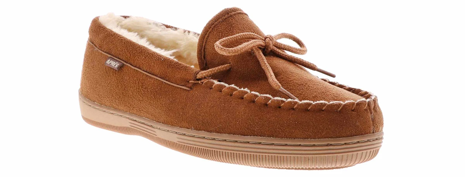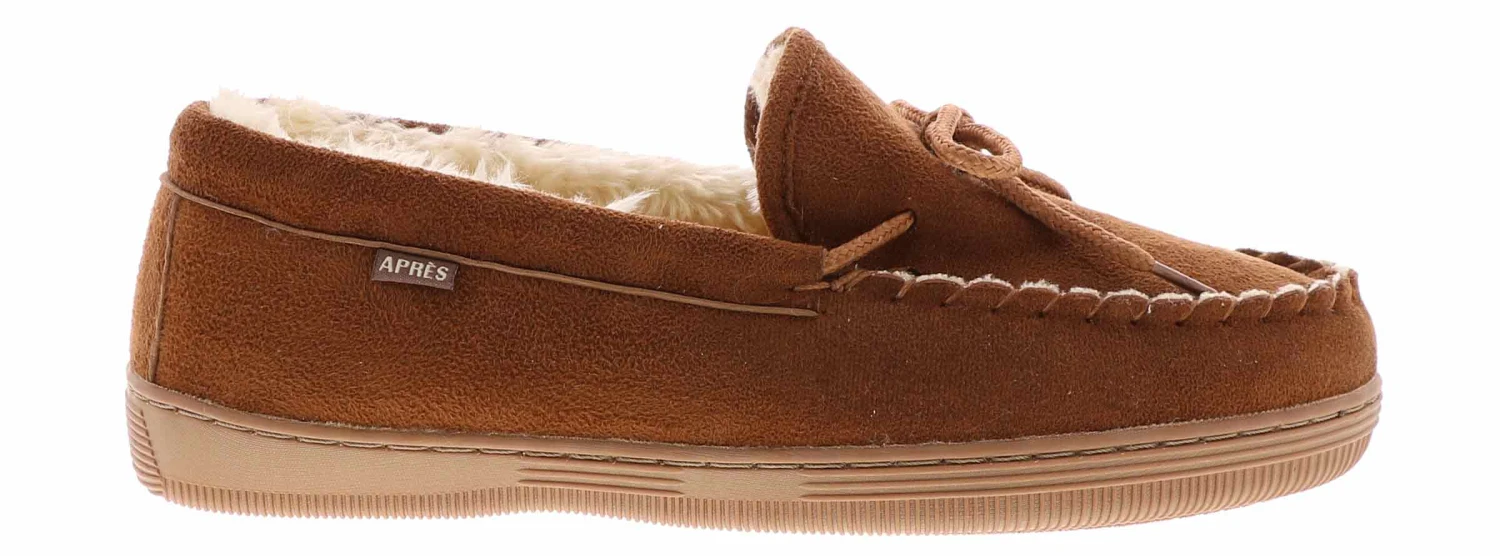 Get comfortable with the Apres Classic Moc Slipper in Wide Width. Featuring a faux fur lining and faux bow accent, the Apres Classic Moc Slipper in Wide Width is perfect to keep your feet warm around the house. Rubber outsole for in and out of the house.