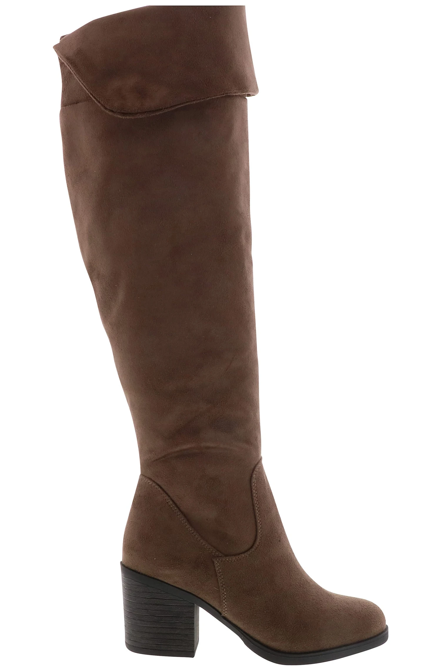 Combine confident and style while wearing the Bamboo Victoria Taupe Women’s Fashion Tall Boot! This shoe features a smooth upper, round-toe and a fun knee-high style. This synthetic suede design features a side zipper for easy access and a padded insole for comfort. The durable outsole is lifted with the 2-inch block heel. The Bamboo Victoria Taupe Women’s Fashion Tall Boot is simple and classic!