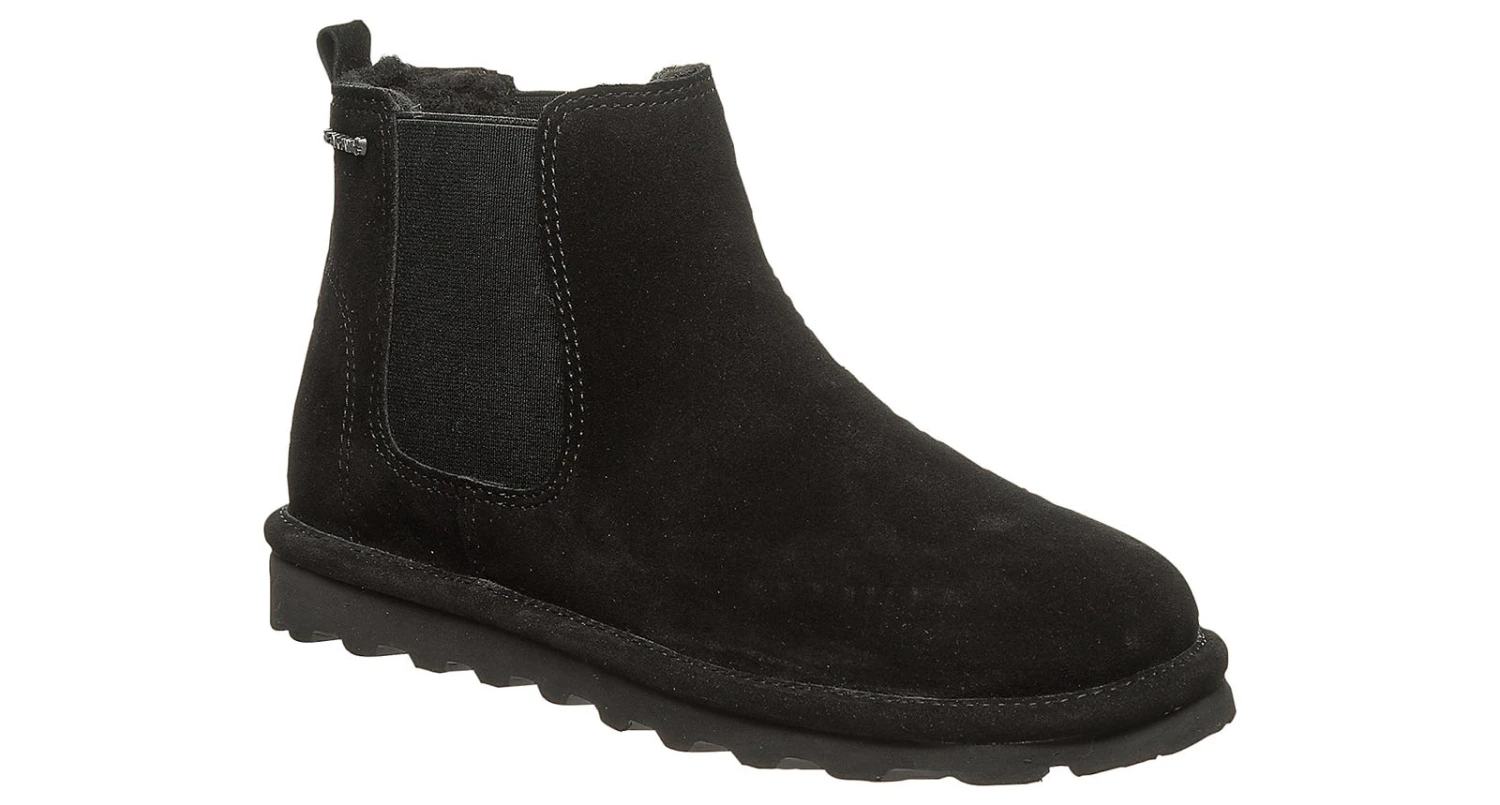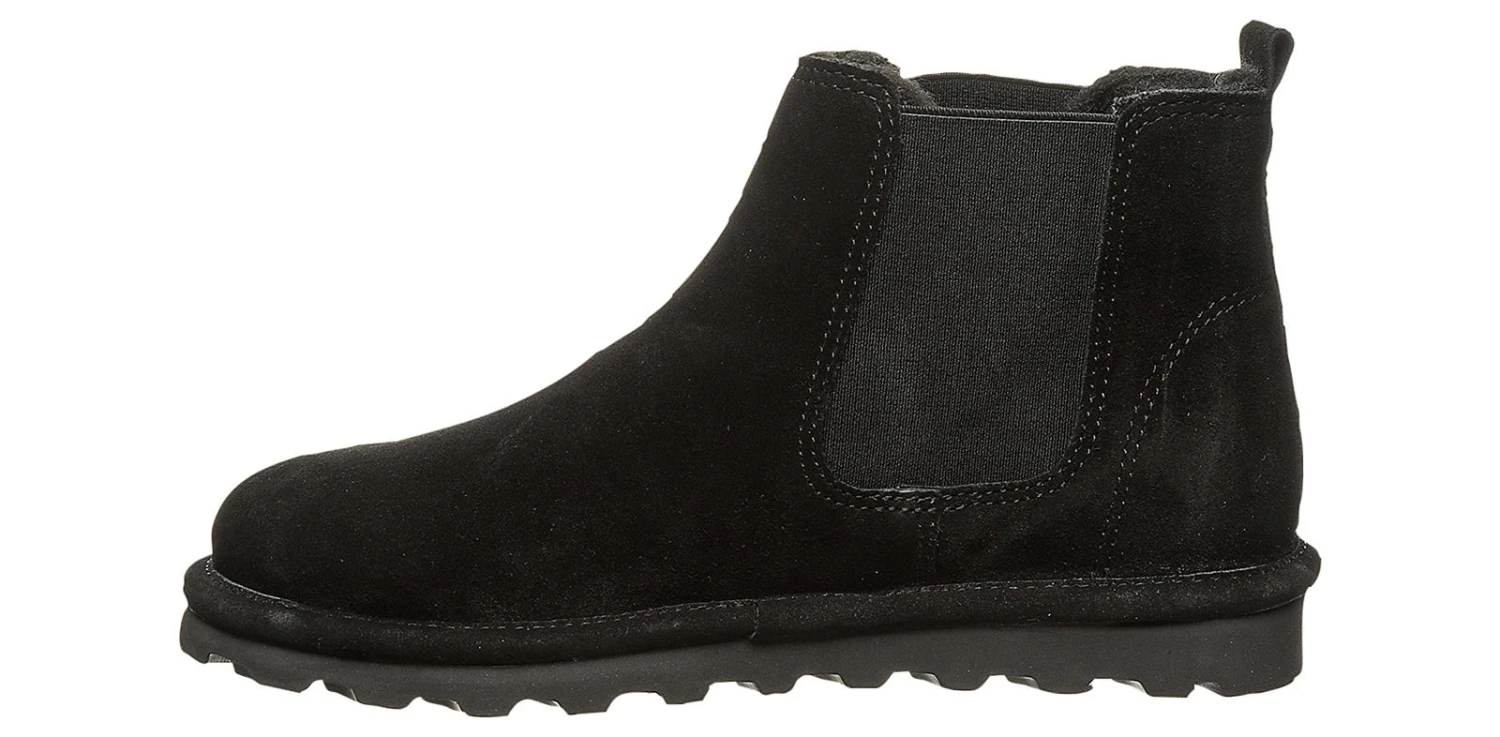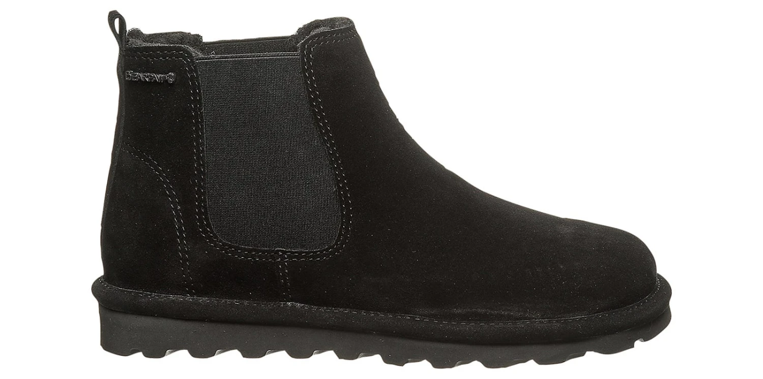 The Bearpaw Drew Black Women’s Bootie combines warm and rugged for an all-around perfect fall and winter boot! This warm style, built with a wool blend lining and a sheepskin footbed, also features a durable rubber outsole and water-resistant technology. Simple style meets luxury comfort with the Bearpaw Drew Black Women’s Bootie!