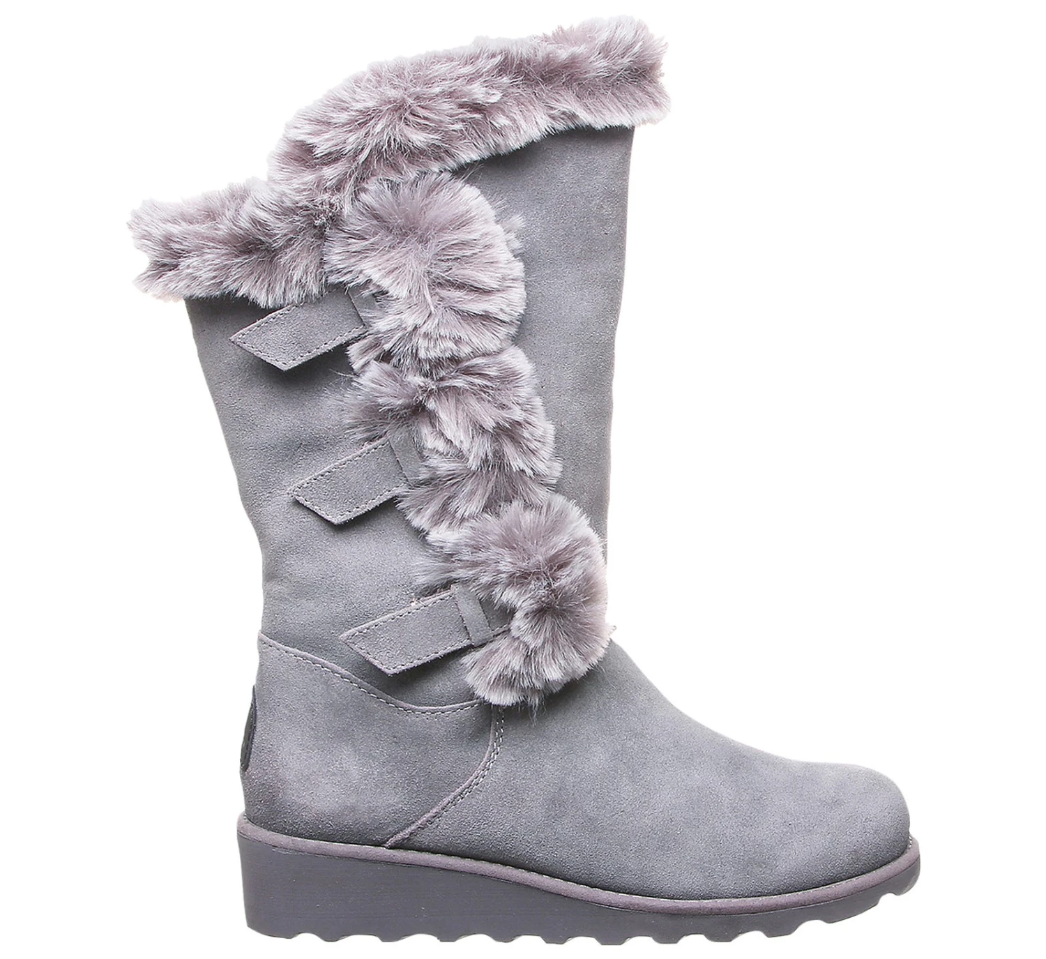 Don’t settle for any fur boot! Try the Bearpaw Genevieve Gray Fog Women’s Tall Boot! Made with fur details, triple buckles on the side, and NeverWet technology. The sheepskin comfort footbed delivers all the comfort you need. While the rubber outsole provides stability, traction, and grip. The Bearpaw Genevieve Gray Fog Women’s Tall Boot is perfect for any fall outfit.