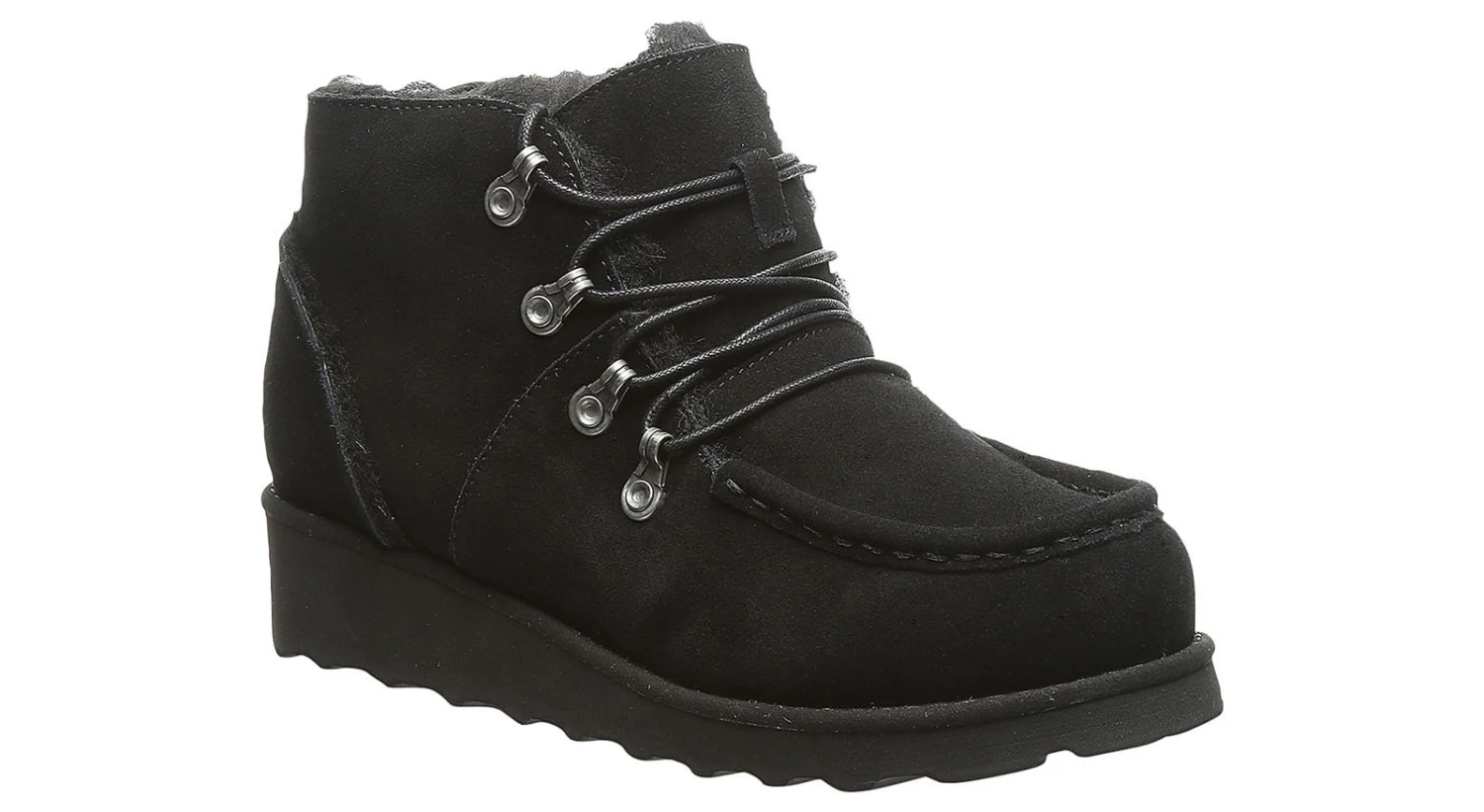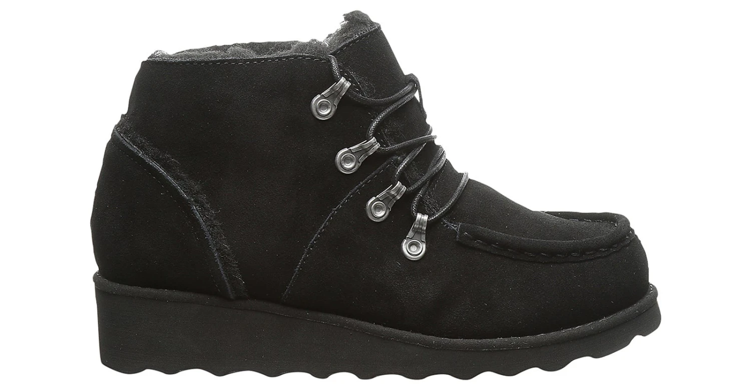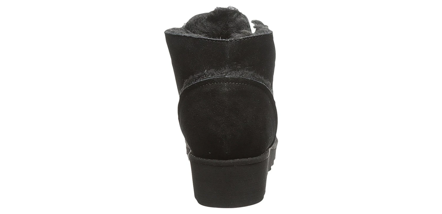 Looking for a boot that keeps you toasty warm but flaunts a unique style? Look no further! The Women’s Bearpaw Malinda Black Bootie is a gorgeous style for an outing at your favorite restaurant, even in wild winter weather! The Bearpaw Malinda Black Women’s Bootie also adds a bit of chic to your go-to casuals. Either way, the NeverWet Technology will keep your feet dry and the comfort sheepskin footbed will fend off foot fatigue while you strut your stuff.