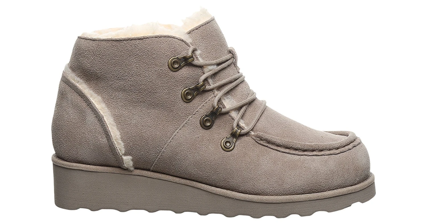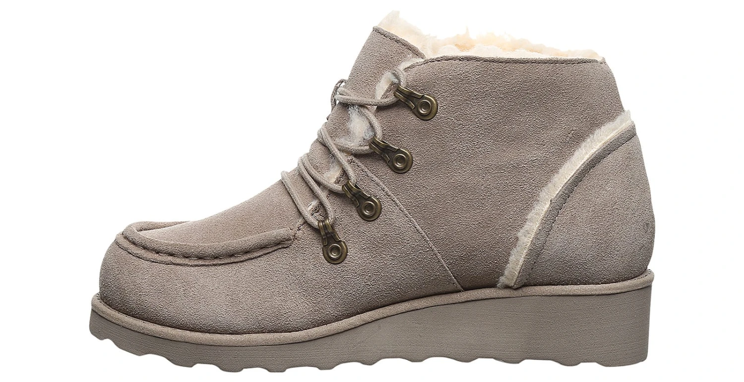 The Women’s Bearpaw Malinda Stone Bootie is a gorgeous style for an outing at your favorite restaurant, even in wild winter weather! The Women’s Bearpaw Malinda Grey Bootie also adds a bit of chic to your go-to casuals. Either way, the NeverWet Technology will keep your feet dry and the comfort sheepskin footbed will fend off foot fatigue while you strut your stuff.