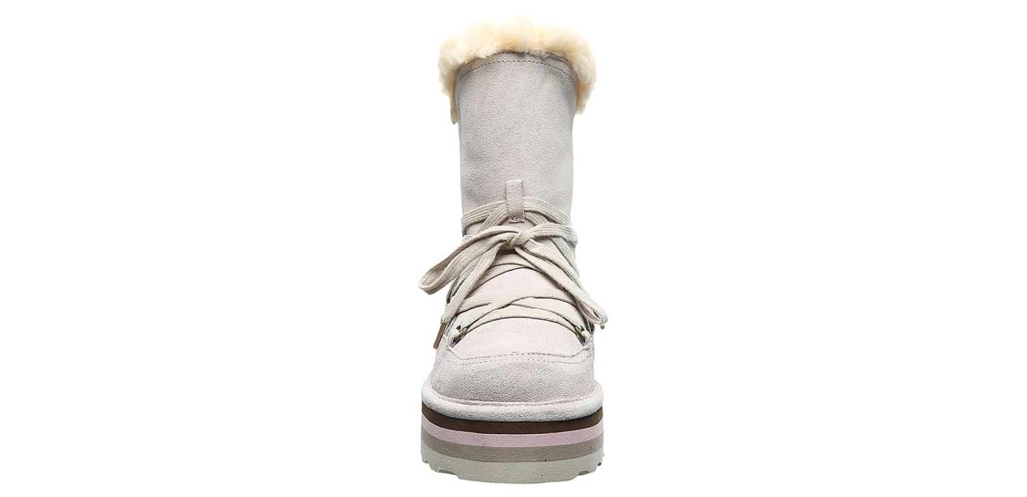 When you step outside this season to enjoy the cool fall breeze or a dusting of snow on the trees, these beautifully crafted Bearpaw Retro Mondi Beige Women’s Platform Boots with a warm wool lining will match the ambience perfectly. The retro-styled lifted heel adds an element of fun and fashion along with the lace up detail for adjustable comfort.