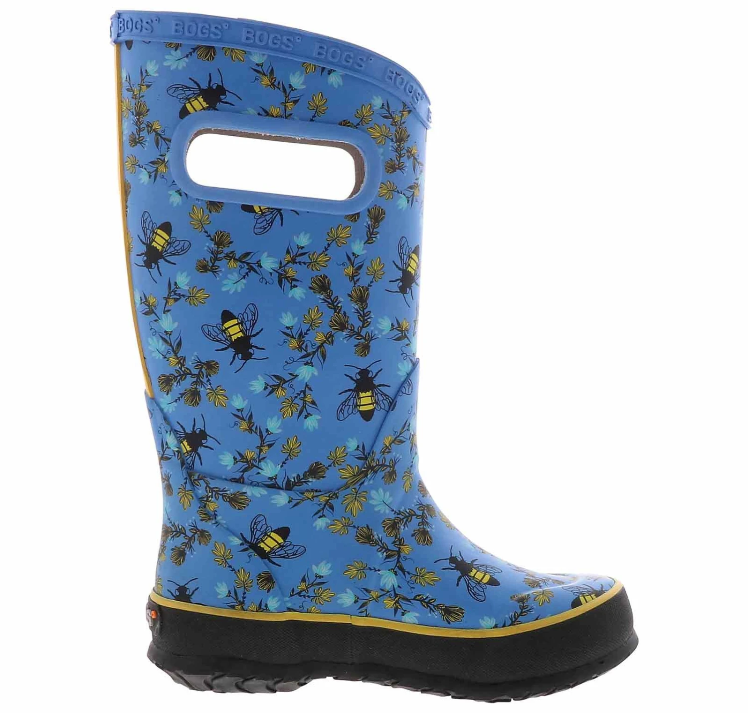 She will look sweet as can be wearing the Bogs Bees Azure Girls’ (1-6) Rain Boot! This slip-on rubber boot features a cushioned insole and two pull-on handles for easy self-dressing. With a waterproof design, she will want to play in all the puddles wearing the Bogs Bees Azure Girls’ (1-6) Rain Boot!