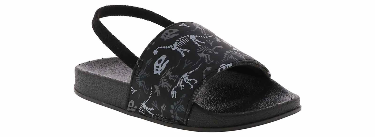 The Capelli Dino Fossil Toddler Boys’ (5-10) Water Slide Sandal is perfect for your curious little one! This slip-on slide features a fun dinosaur fossil design and a secure ankle strap. The mesh lining and rubber outsole provide breathability and durability throughout all his adventures when he wears the Capelli Dino Fossil Toddler Boys’ (5-10) Water Slide Sandal!