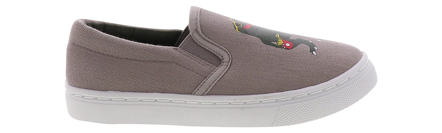 He will never want to take off his Capelli Hungry Dino Boys’ Casual Shoe! This style has a canvas upper decorated with a cool dinosaur that your boy will love. The cushioned insole will keep his feet comfortable on the go, while the outsole is lightweight and flexible. The Capelli Hungry Dino Boys’ Casual Shoe is a pair for style and comfort!