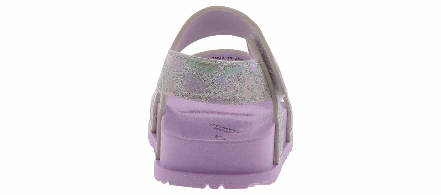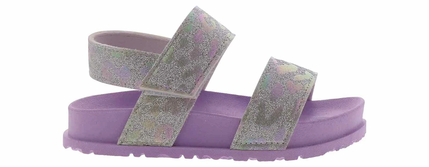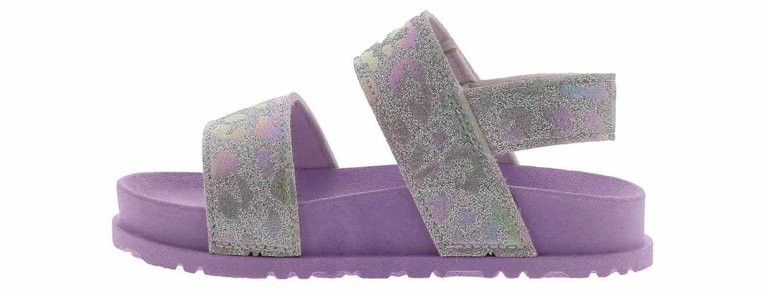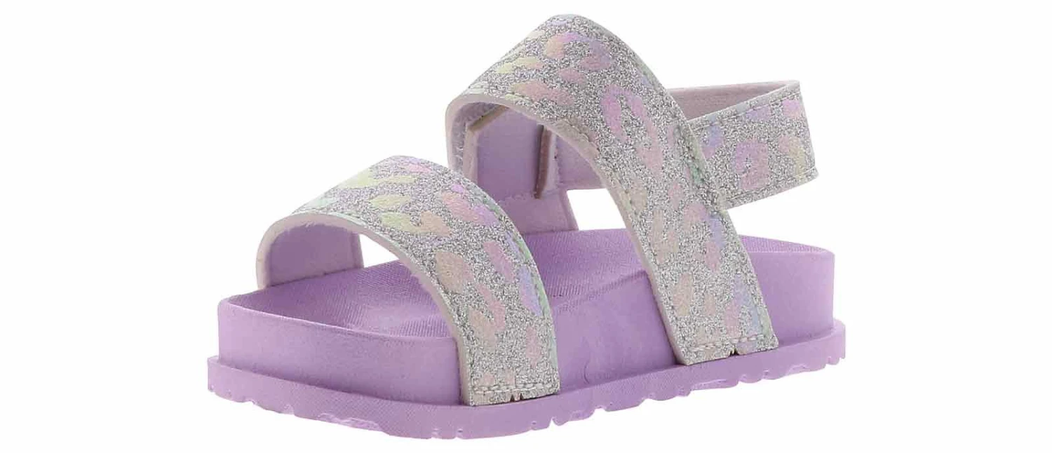 The Capelli Leopard Toddler Girls’ (5-10) Footbed Sandal is trendy and cute! This sandal is perfect for any occasion with its stylish leopard print design and durable outsole. The adjustable hook-and-loop strap and comfort insole provide a secure fit to her feet when she wears the shimmery Capelli Leopard Toddler Girls’ (5-10) Footbed Sandal!
