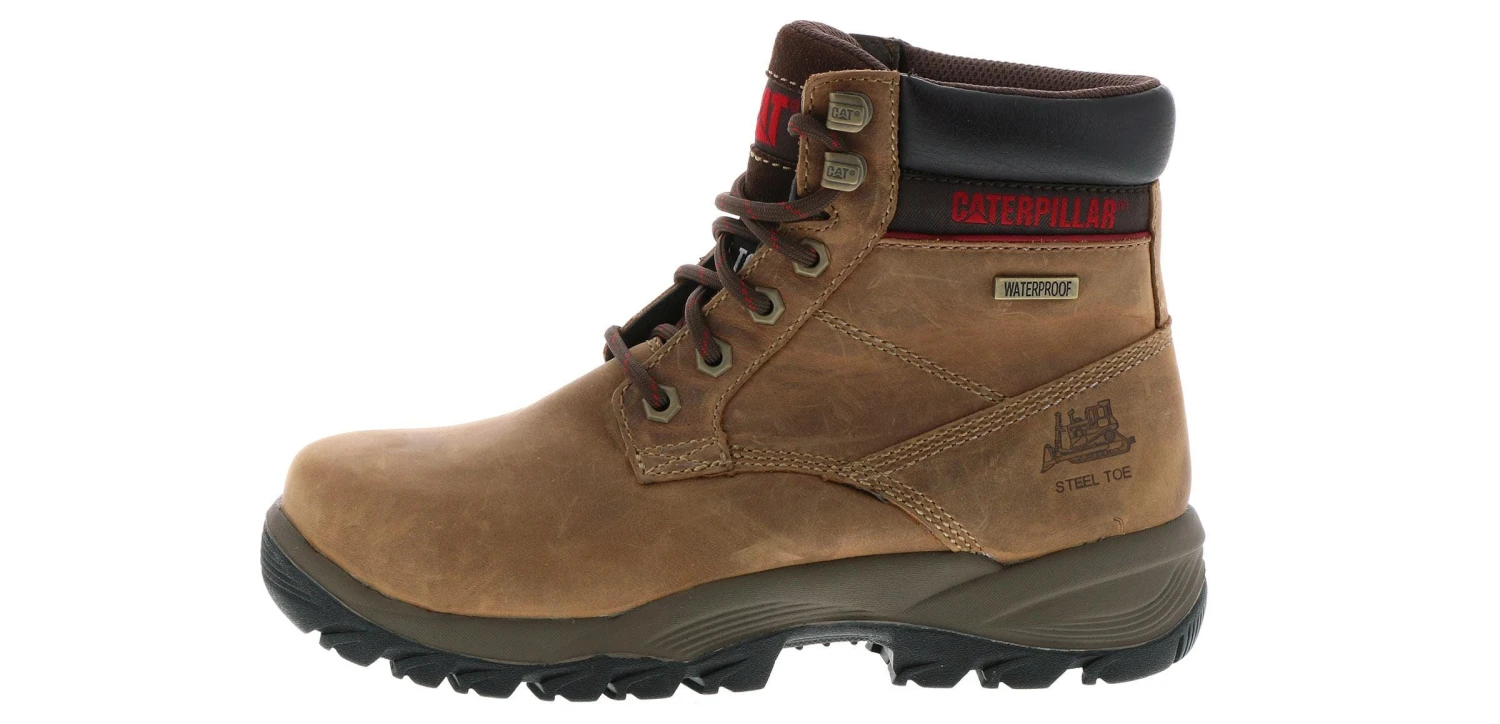 Head to work with protection at your feet in these Caterpillar Dryverse work boots. This style features a waterproof leather upper with a Steel Toe insert for protection. The Caterpillar Dryverse work boots have a cushioned ERGOlite technology insole to ensure you stay comfortable while on your feet all day.