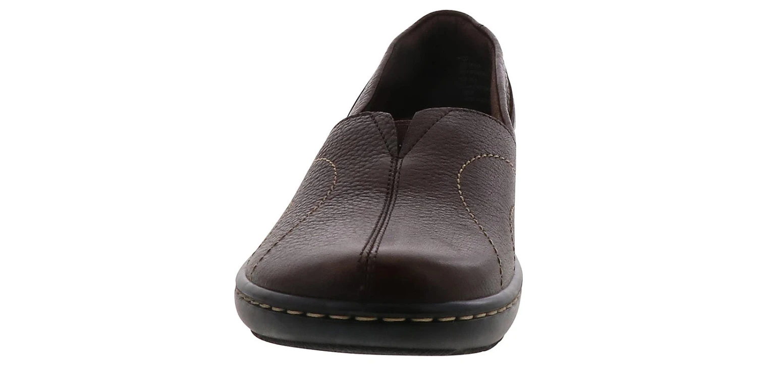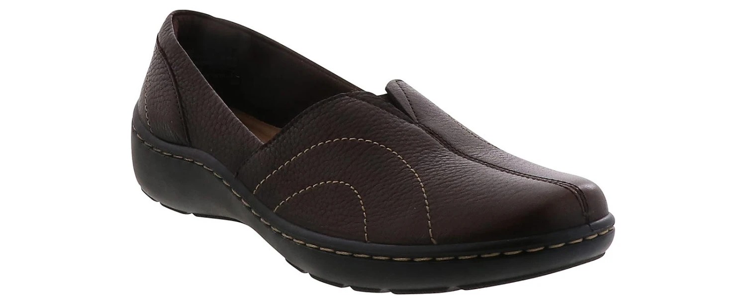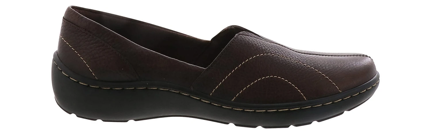 When comfort meets quality- Clarks Cora Meadow Women’s Casual Shoe! This slip-on style features a leather upper with stitched detailing across. The cushioned insole is designed for ultimate comfort. The rubber outsole provides durability and stability. Stay comfortable in the Clarks Cora Meadow Women’s Casual Shoe!
