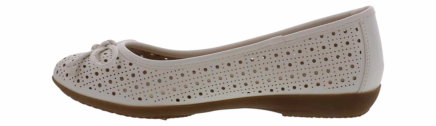 Add a stylish and breathable shoe to your wardrobe with the Cliffs by White Mountain Cheryl Women’s Flat! This slip-on features a manmade upper with a decorative bow and side cut-out detailing. The memory foam insole will form comfortably to your unique foot shape, while the rubber outsole delivers extra support and traction. Style your outfits with something simple wearing the Cliffs by White Mountain Cheryl Women’s Flat!