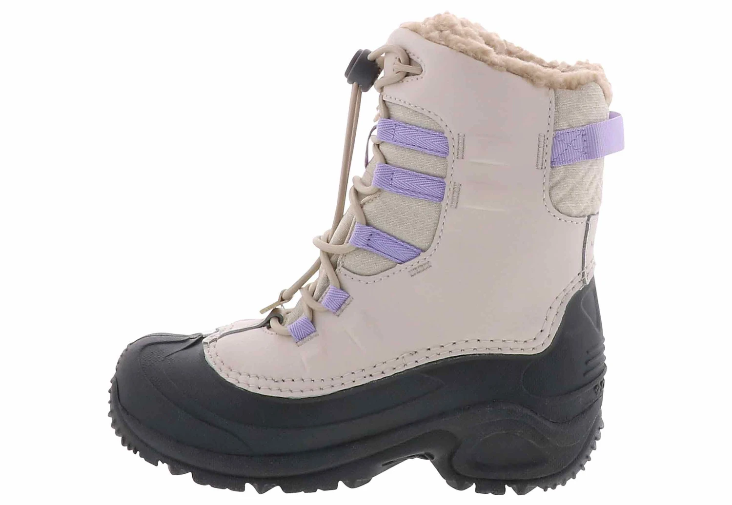 The Colombia Youth Bugaboot Celsius Girls’ Weather Boot will have your little one ready to build a snowman and climb that sledding hill! This style has a waterproof PU-coated leather and textile upper and waterproof seam-sealed construction. The bungee lace closure gives you extra support while the injection molded rubber shell outsole provides traction and stability. Get your little one winter wonderland ready with the Colombia Youth Bugaboot Celsius Girls’ Weather Boot!