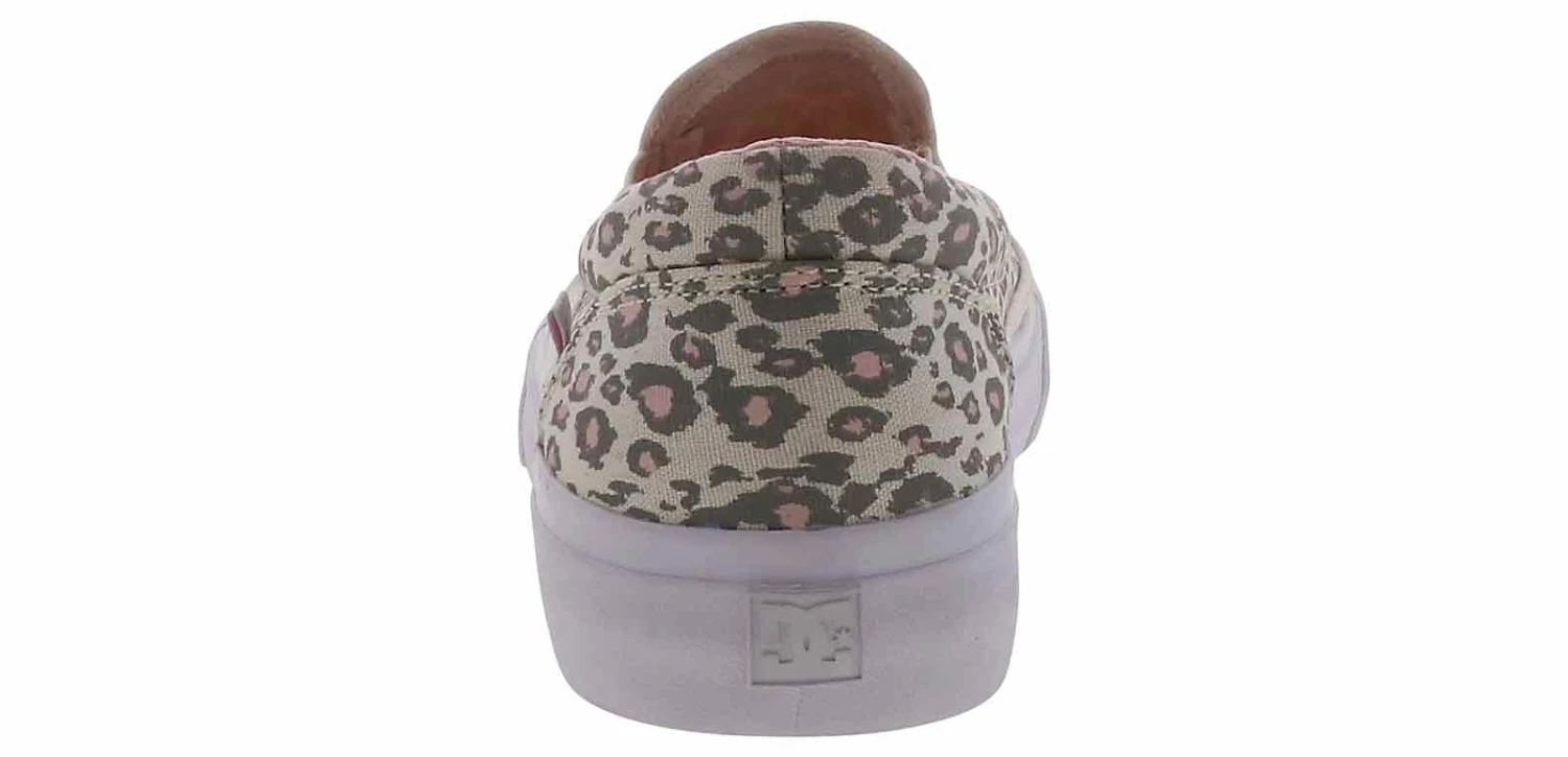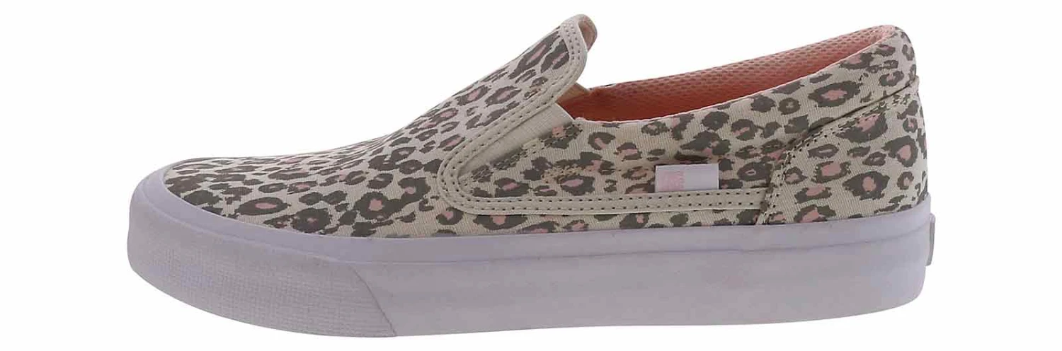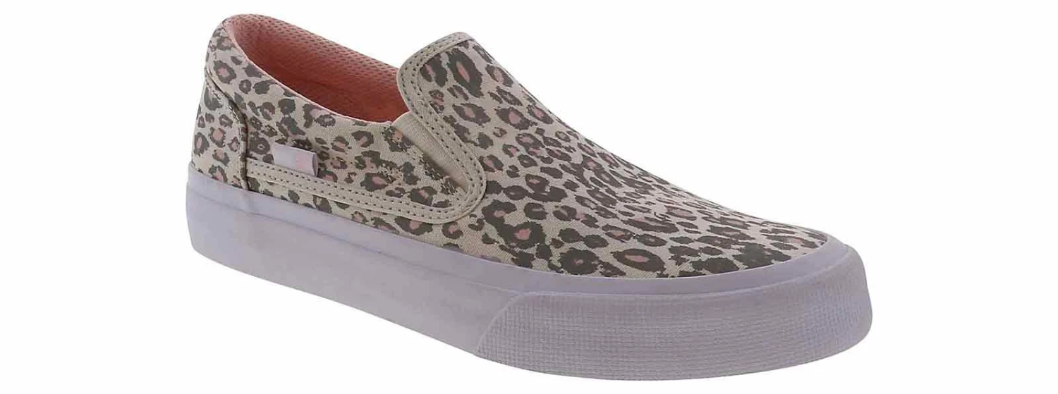 You will feel bold and confident while wearing the DC Shoes Trase Women’s Sneaker! This pink and grey cheetah printed canvas upper features a slip-on style is the perfect shoe to style with your everyday look. The padded collar and cushioned insole will keep you comfortable all day. While the rubber outsole is durable and provides grip. Be wild and fun with the DC Shoes Trase Women’s Sneaker!