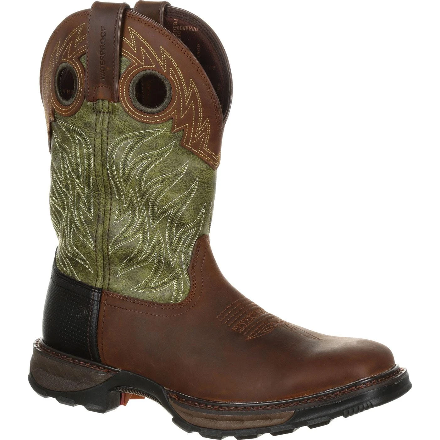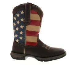 This men’s 11″ Western Waterproof Boot has a full-grain leather vamp, collar and pull straps with a faux shaft. Inside is a soft mesh lining and a Durango Waterproof membrane bootie to keep your feel dry all day long. It has the Durango X-Pand System which is a hidden gore expansion on the inside for a universal fit and easy on/off. It has a double row sole stich around the square toe for added durability and a 1.5″ rocker heel.