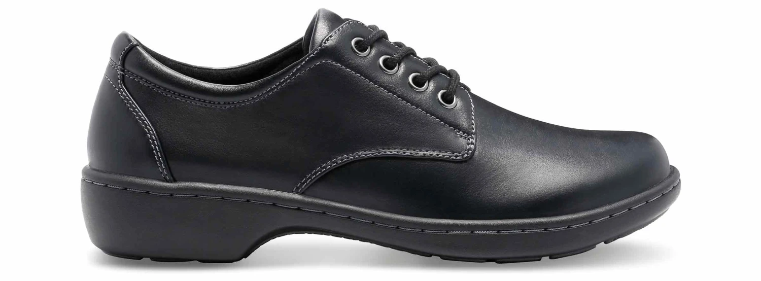 Easily transition from business hours to after hours with the tailored profile of our Eastland Pandora Women’s oxfords. This style features a synthetic upper with a cushioned insole for all day comfort. The Eastland Pandora oxfords have a shock absorbing outsole and a 1.75 inch heel height.