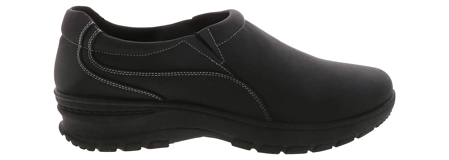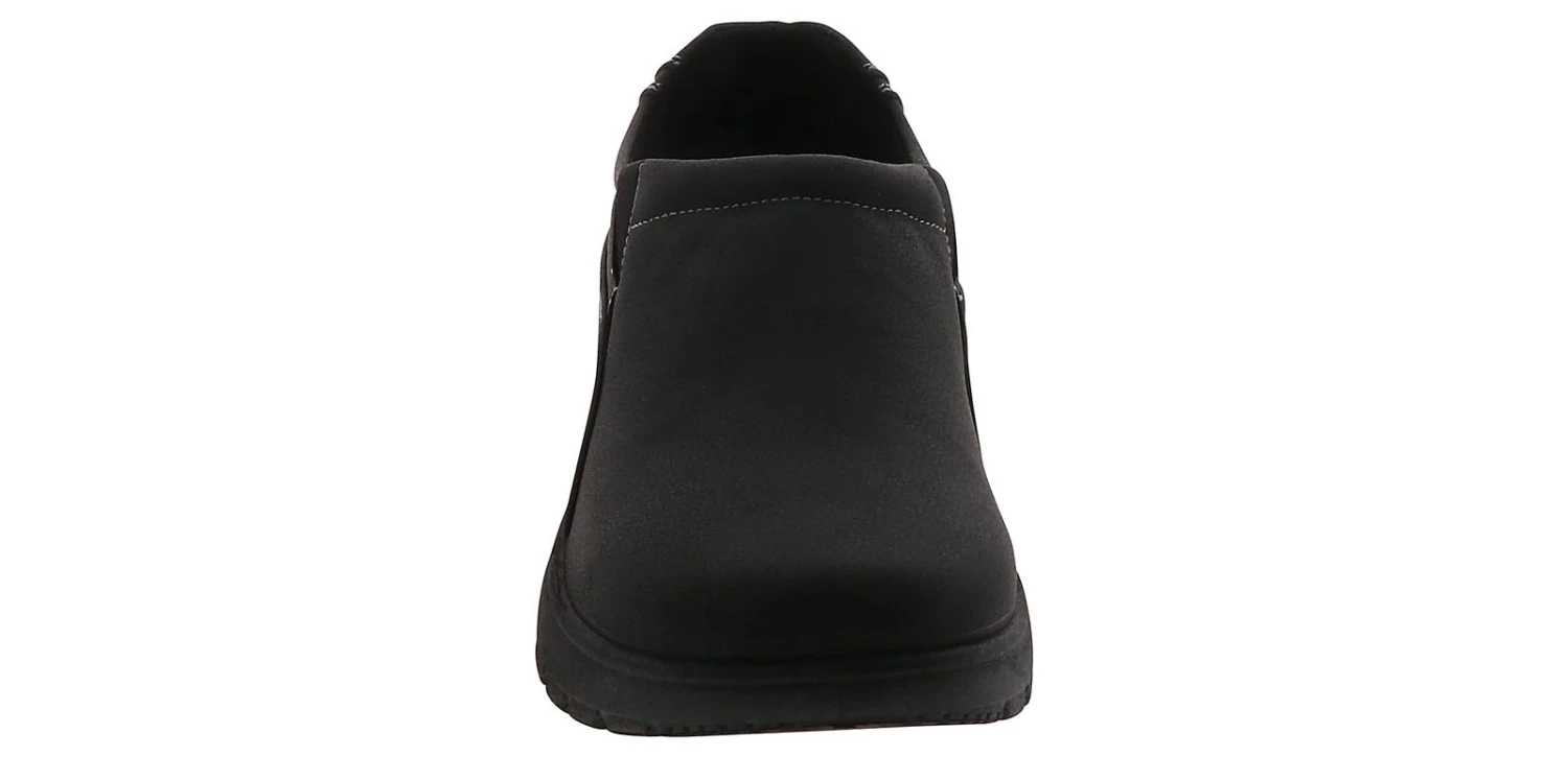 Feel safe at work while wearing the Easy Works Jayn Women’s Work Shoe . You can slip-on and go with this slip-on style. The synthetic upper will protect your feet, while the comfort wave durable outsole is slip-resistant while offering grip and traction. The stress-reducing insole offers arch support and impact absorbing. Get through the day with ease in the Easy Works Jayn Women’s Work Shoe!