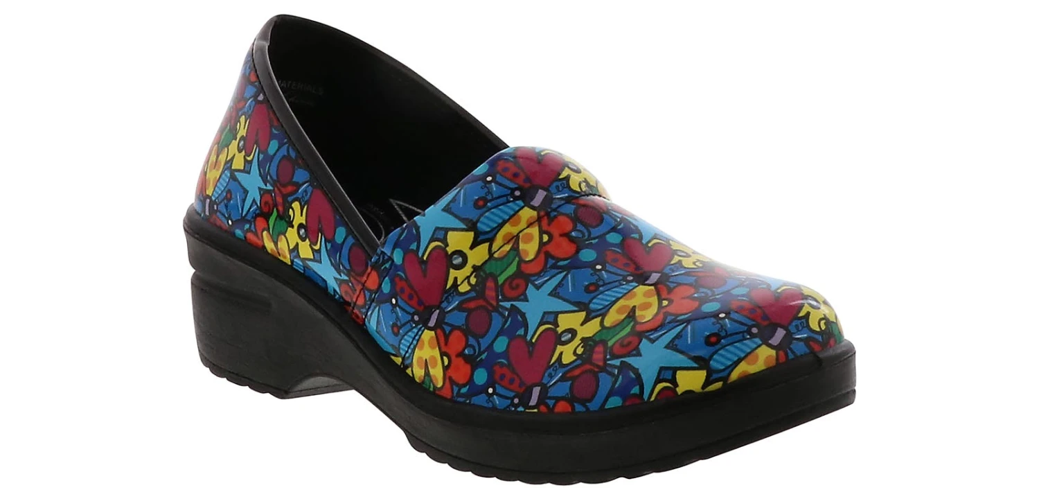 Get your spring on with the Easy Works Laurie Trendy Garden Patent Women’s Work Clog! This slip-resistant work clog features a non-marking, rubber outsole and a cushioned, stress-reducing insole. The fun-colored garden design will brighten your days when you step out in the Easy Works Laurie Trendy Garden Patent Women’s Work Clog!