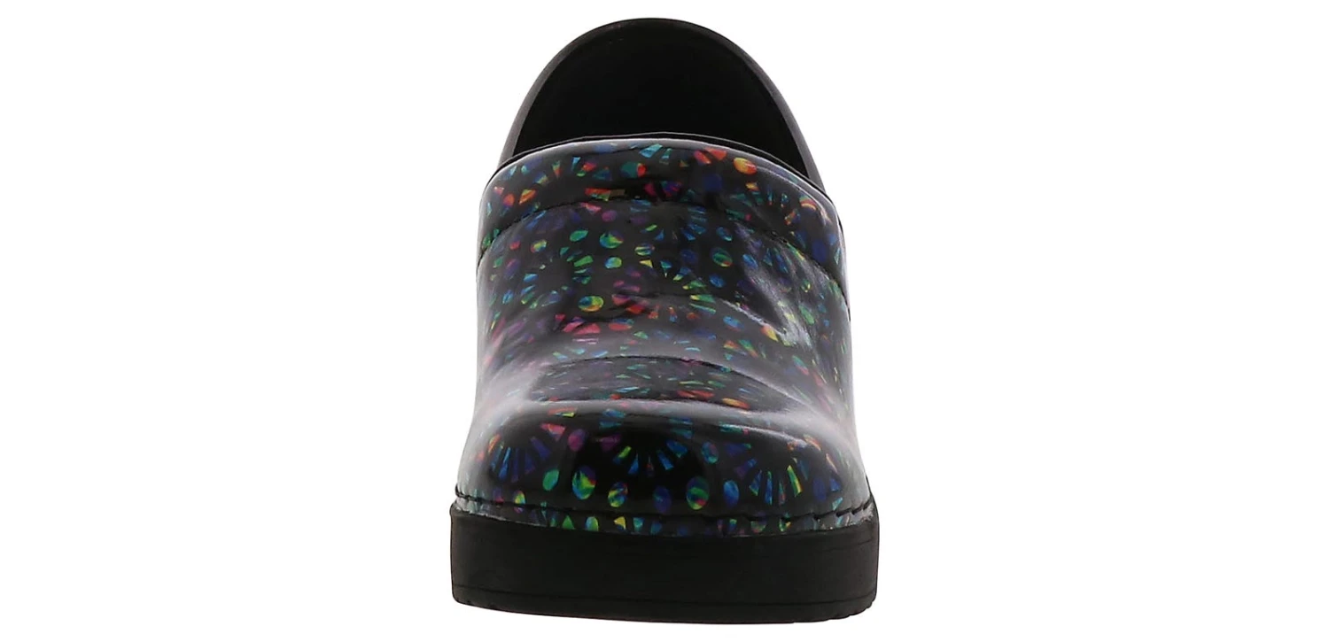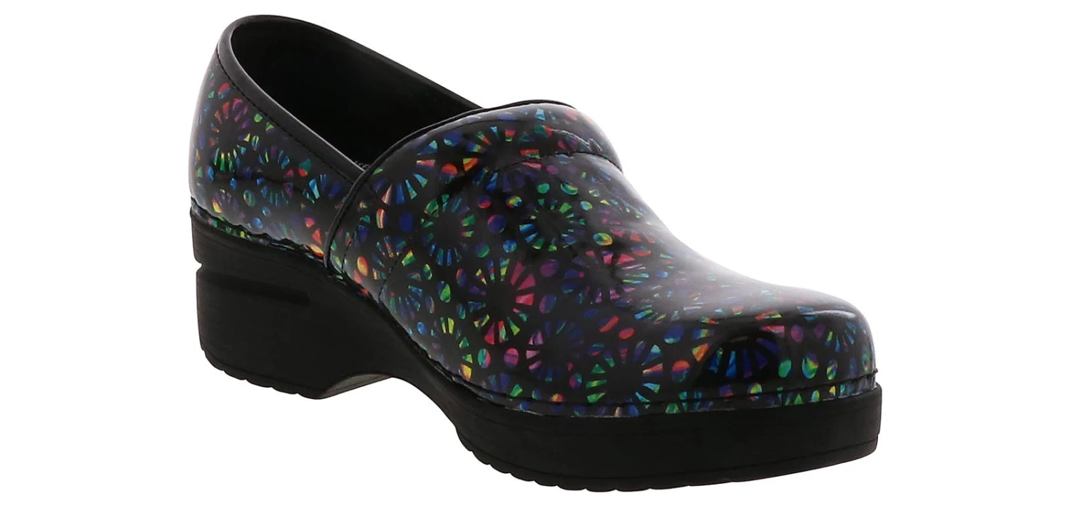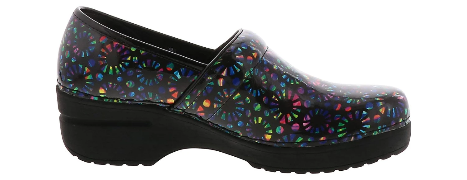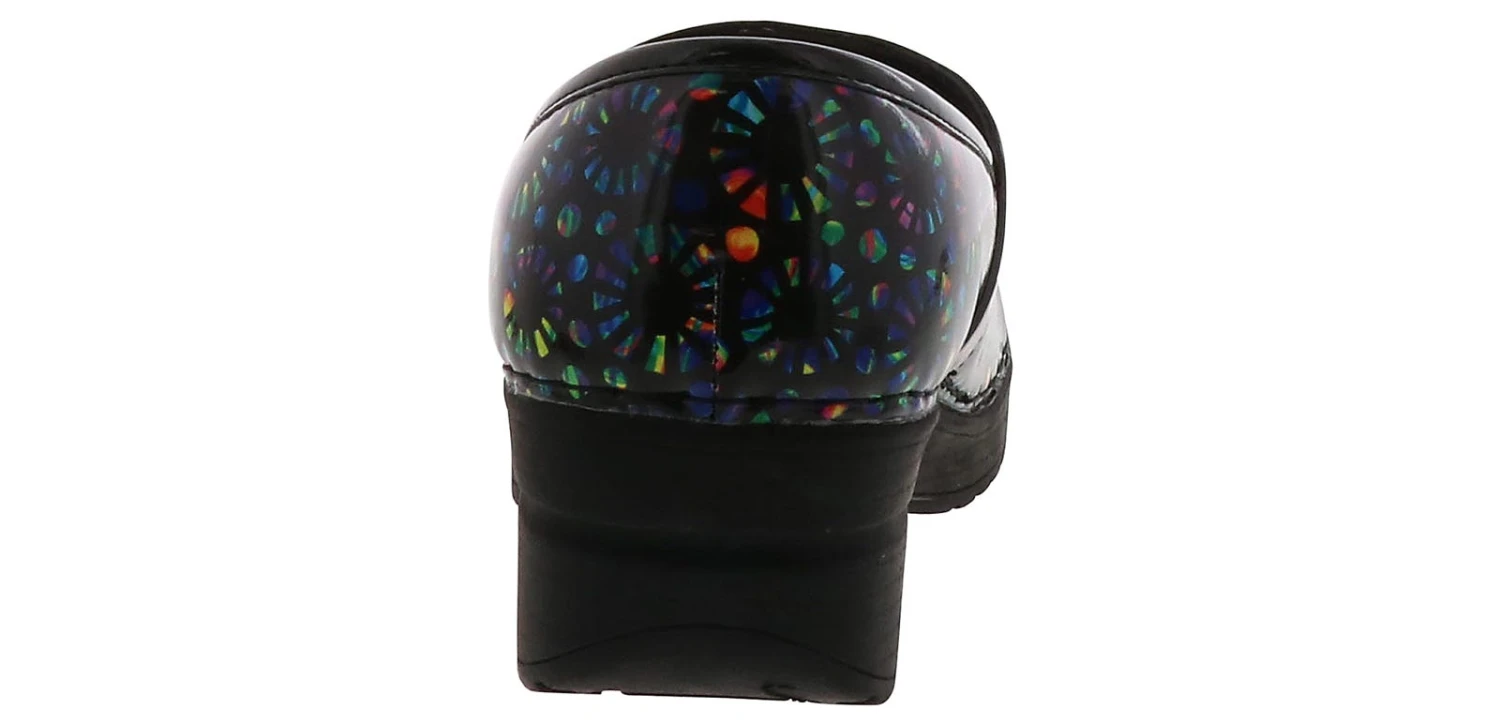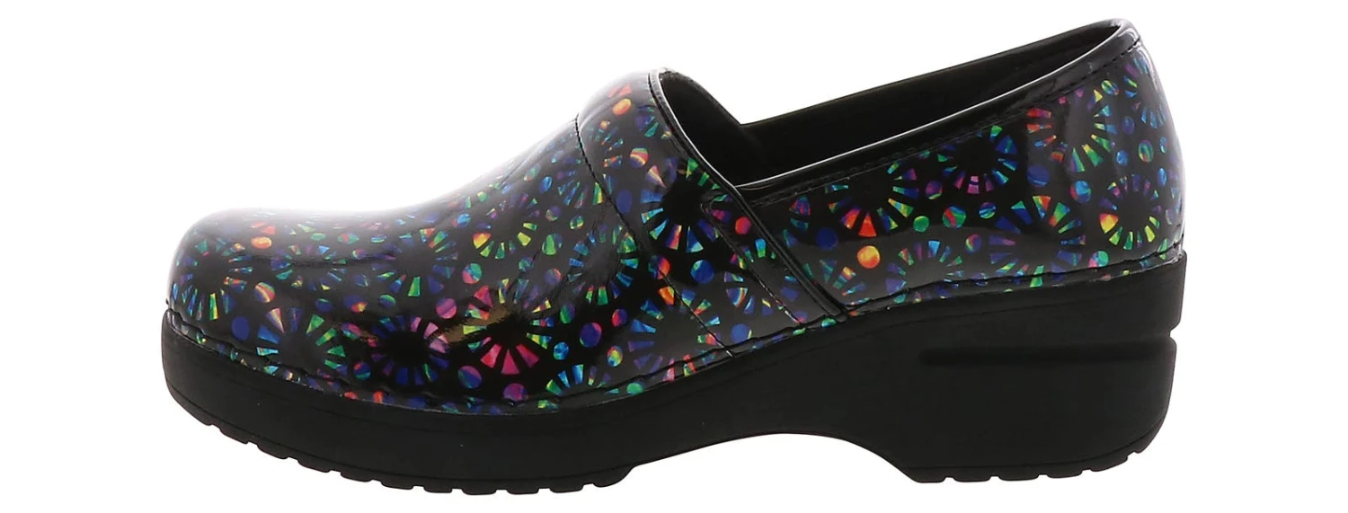 Get to work in style with the Easy Works Lead Stain Glass Patent Women’s Work Clog! This slip-on clog features a tie-dye-stained glass pattern that is unique and fun. The cushioned and stress-reducing insole keeps you light on your feet, while the non-marking rubber outsole prevents slips. You will love working in the Easy Works Lead Stain Glass Patent Women’s Work Clog!