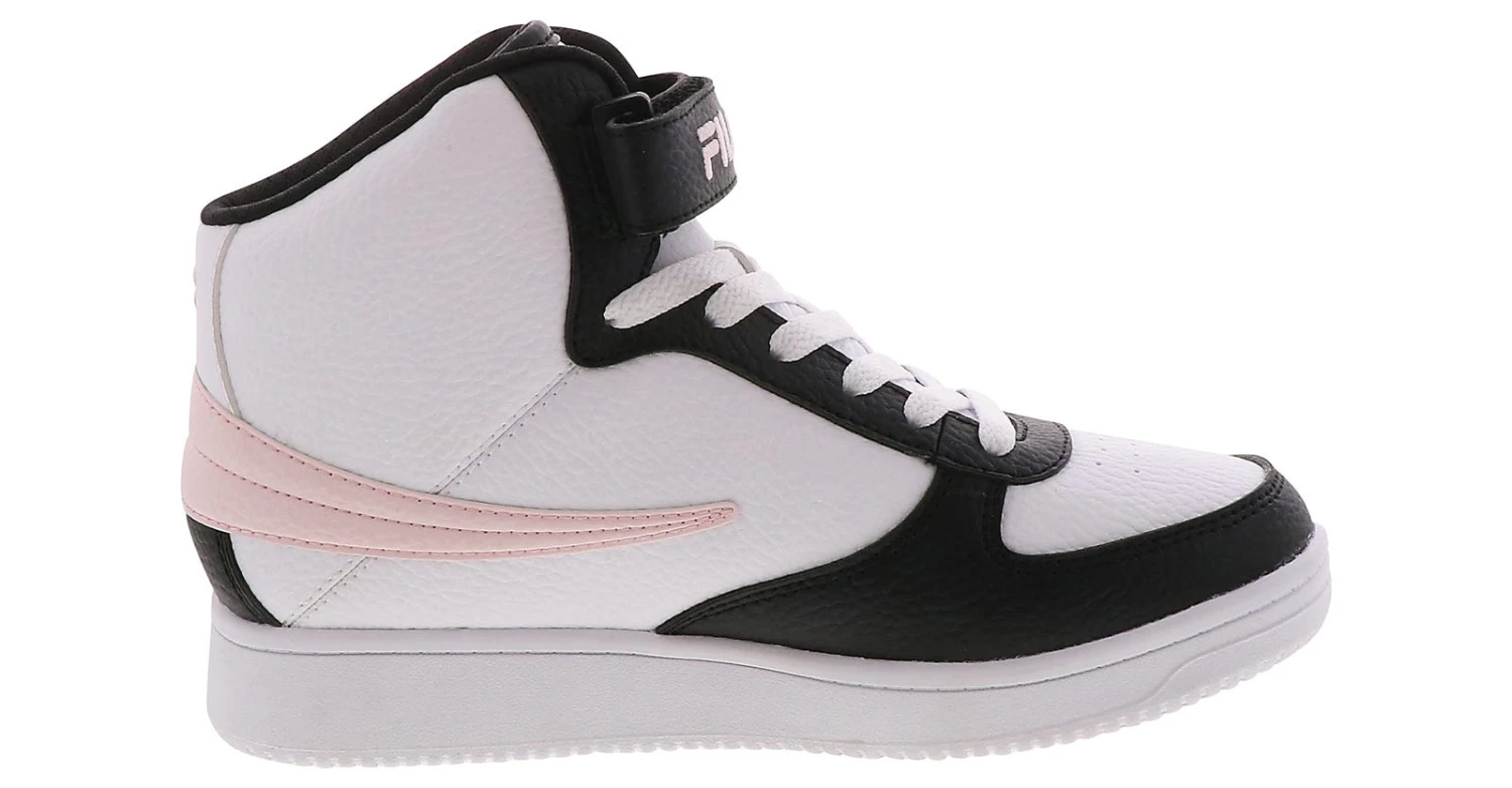 Keep it stylish with the Fila A-High Women’s Court Style Sneaker! This high-top synthetic sneaker features a hook-and-loop closure and a lace-up front for an extra secure fit. Classic black and white colors make it easy to pair the Fila A-High Women’s Court Style Sneaker with any outfit!
