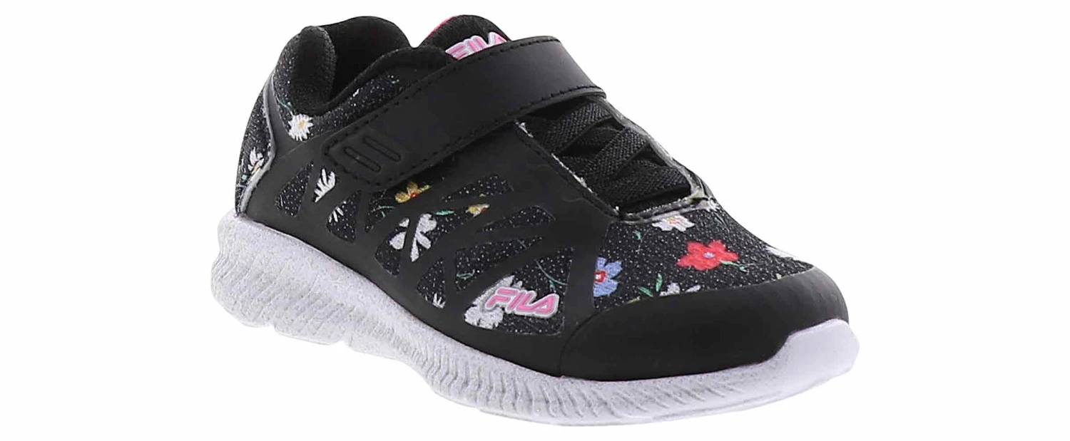 Your girl will be ready to take off in the Fila Fantom 6 Strap Girls’ Running Shoe! The fabric upper is soft and flexible with a hook and loop strap for security. The insole is supportive and the outsole is lightweight and offers stability. She will love the cute flowers and sparkle accents on the Fila Fantom 6 Strap Girls’ Running Shoe!