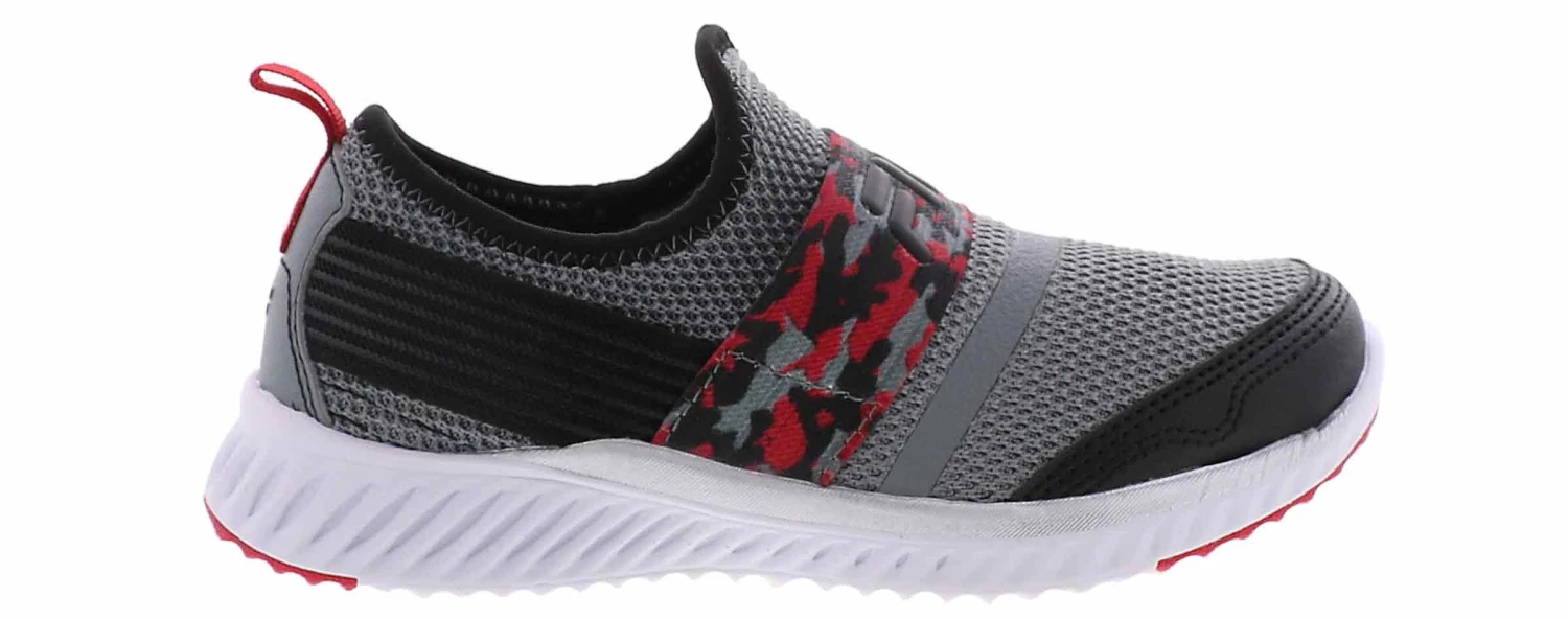 He will be running fast in the Fila Interspeed Boys’ Running Shoe! Featuring a mesh upper and sock-like collar, this style is breathable and easy to slip-on. There is an elastic strap on the upper for extra support. The outsole is lightweight which is perfect for a kid running all the time,