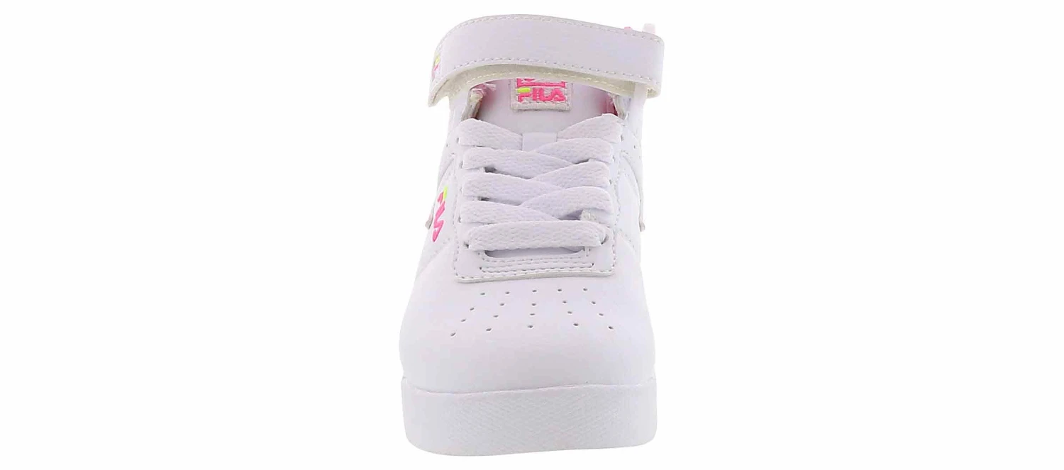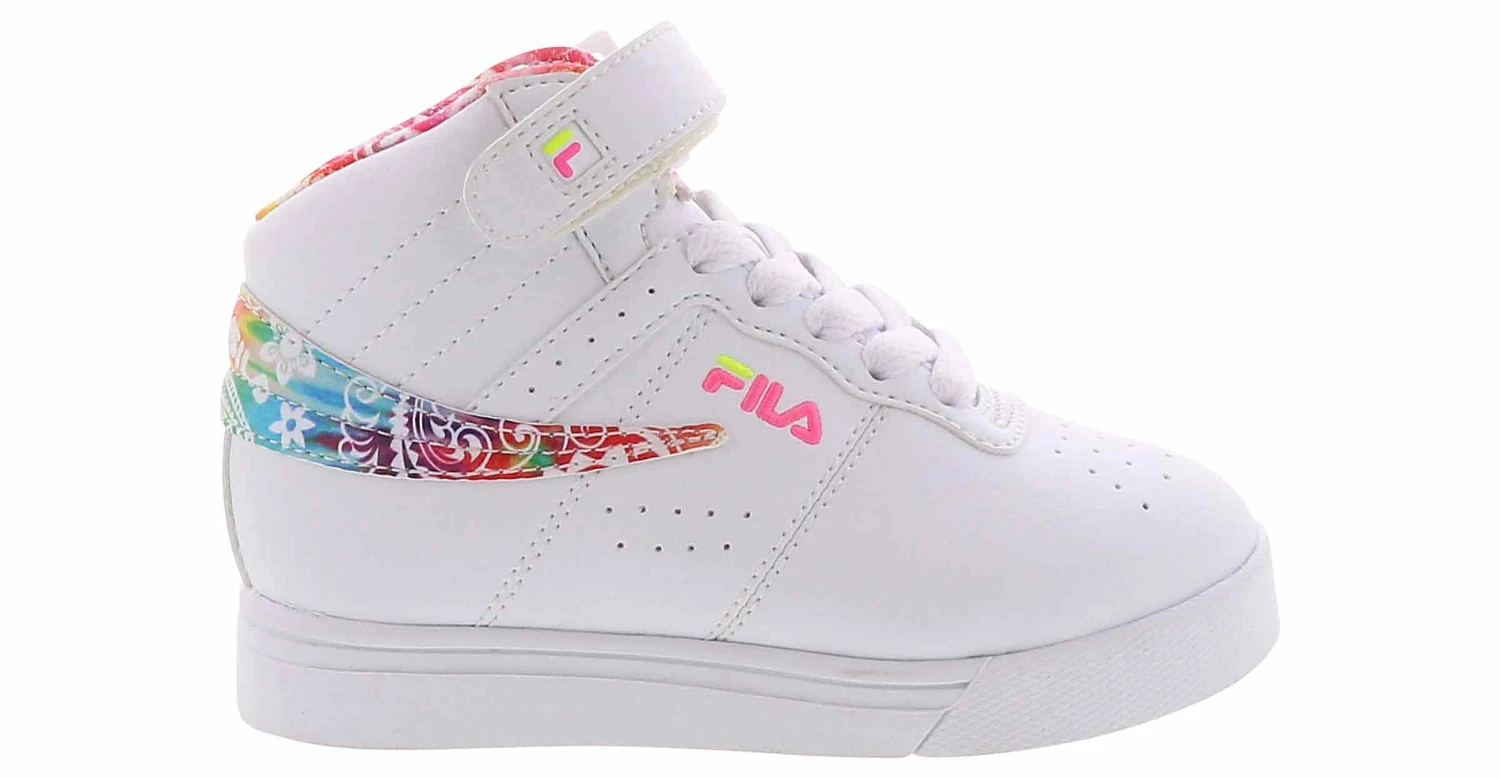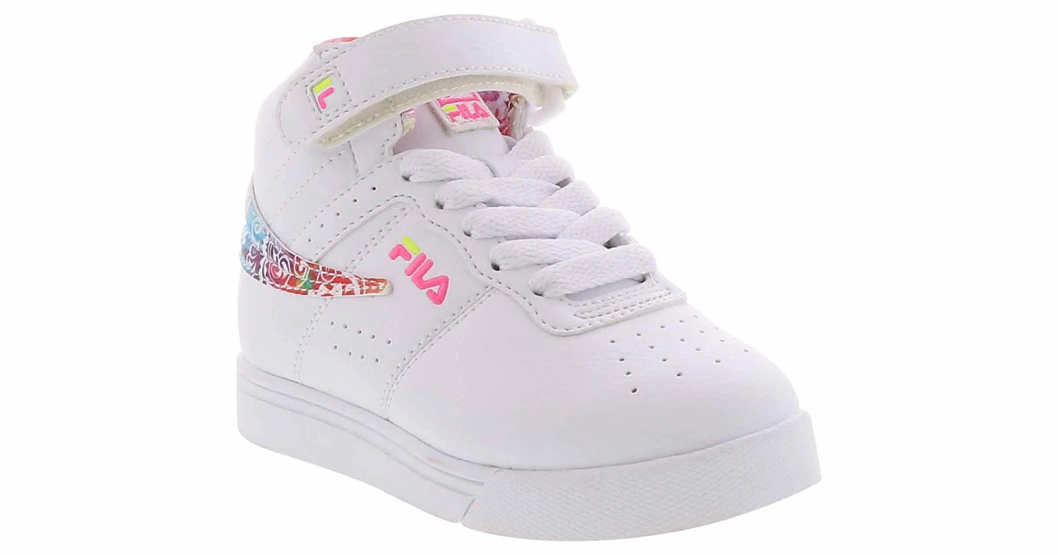 Step up her kick game with the Fila Vulc 13 Rogue Toddler Girls’ Sneaker! This hi-top style features an all-around synthetic leather upper with a lace-up and hook-and-loop closure. The cushioned insole adds padding to every step, while the hi-top ankle adds extra support on the go. The rubber outsole is lightweight and flexible so she can run and play with comfort. She will have the coolest sneakers in school with the Fila Vulc 13 Rogue Toddler Girls’ Sneaker!