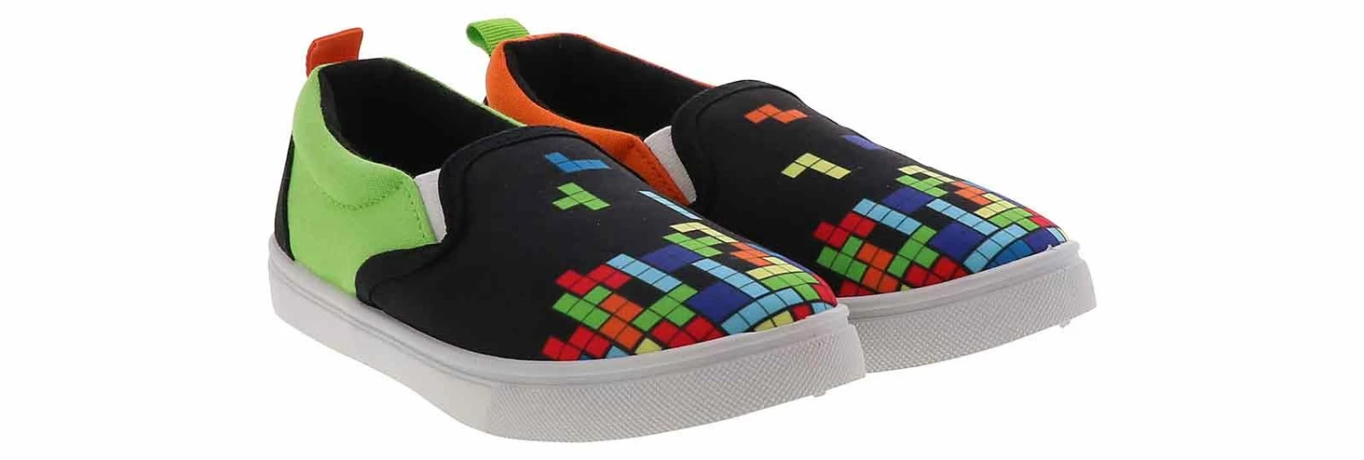 The Ground Up Digital Gamer Boys’ (11-4) Casual Shoe is the perfect everyday shoe for him! This style features a canvas-style upper with a Tetris-printed game design. The lightweight outsole is flexible and supportive throughout all his daily excursions. It is game on when he wears the Ground Up Digital Gamer Boys’ (11-4) Casual Shoe!