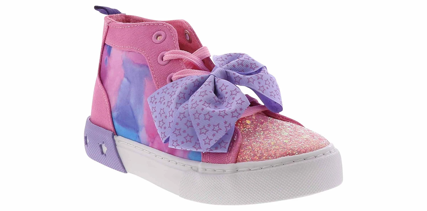 Your little fashionista will love wearing the Ground Up JoJo Siwa Girls’ Hi-Top Sneaker! This stylish sneaker features a colorful canvas upper with a lace-up closure and an adorable decorative bow. The hi-top ankle collar adds extra support, while the cushioned insole delivers soft padding and support. The rubber outsole is lightweight and flexible for a secure long-lasting fit. Top her outfit off with a classy style wearing the Ground Up JoJo Siwa Girls’ Hi-Top Sneaker!