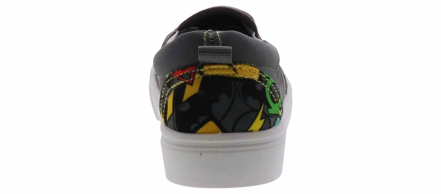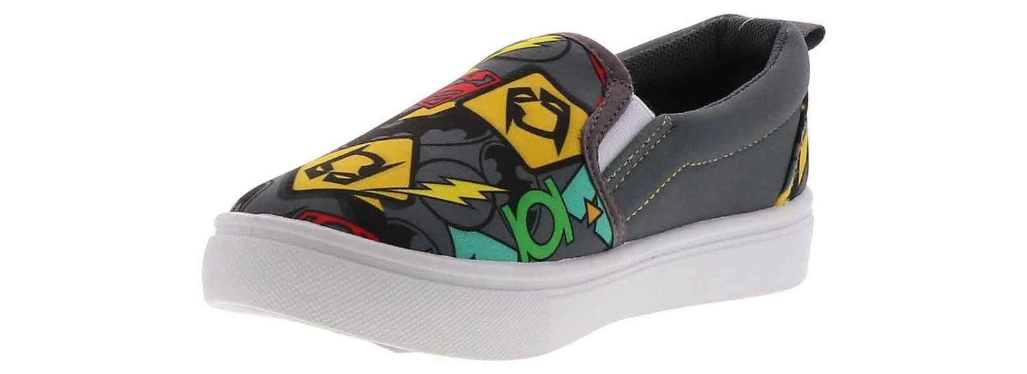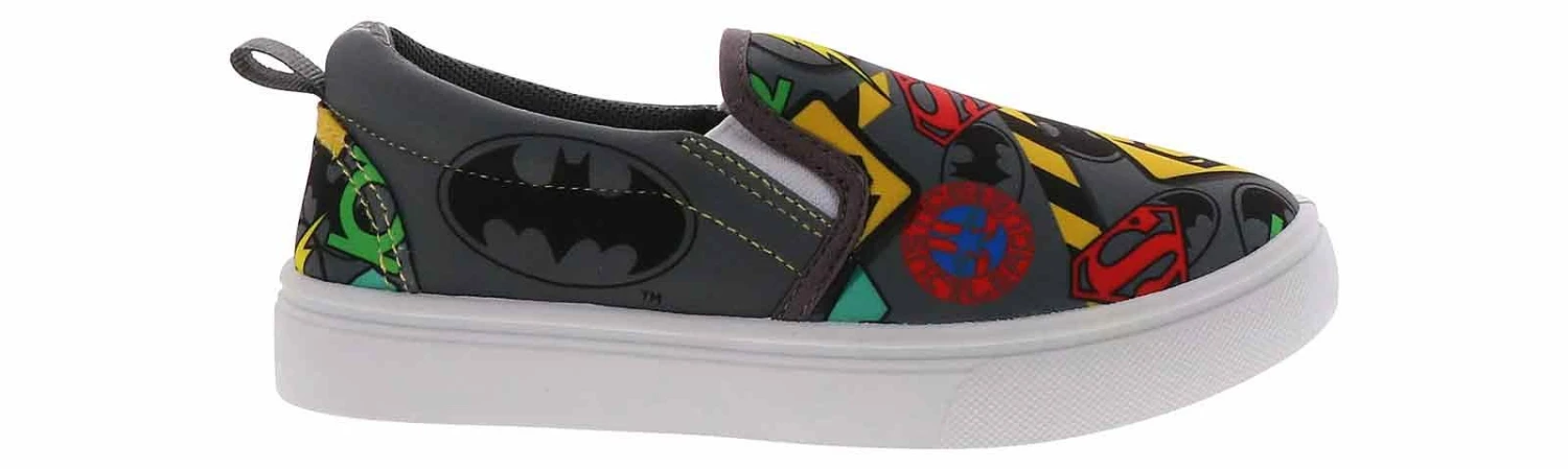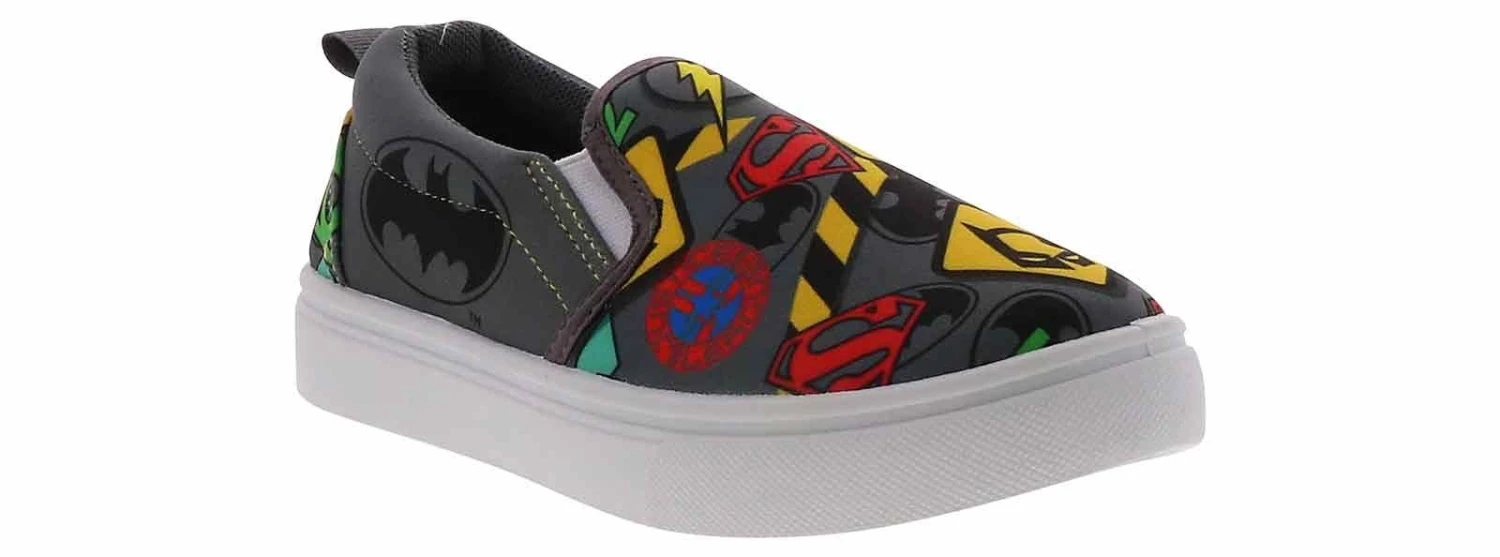 He can rock out all the superheroes when he wears the Ground Up Justice League Twin Gore Boys’ (12-4) Sneaker! This slip-on style features a comfortable cushioned insole and a durable rubber outsole. The Justice League-inspired pattern will make the Ground Up Justice League Twin Gore Boys’ (12-4) Sneaker one of his top-of-the-list styles!