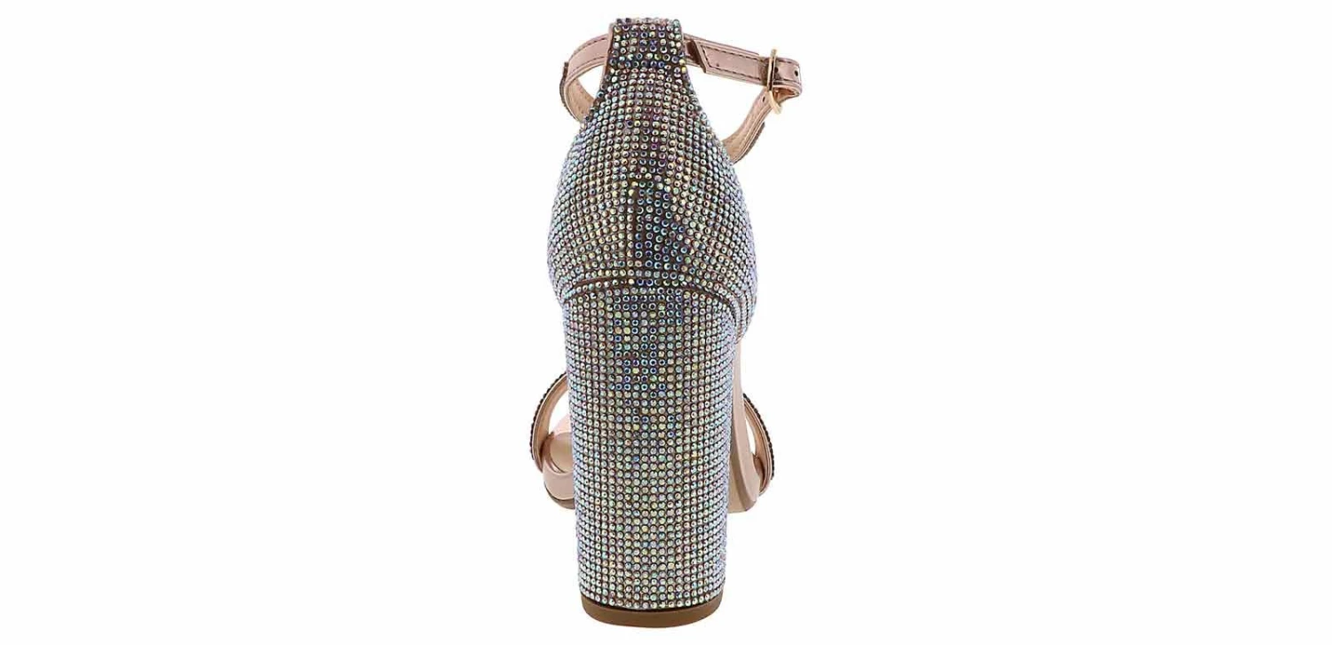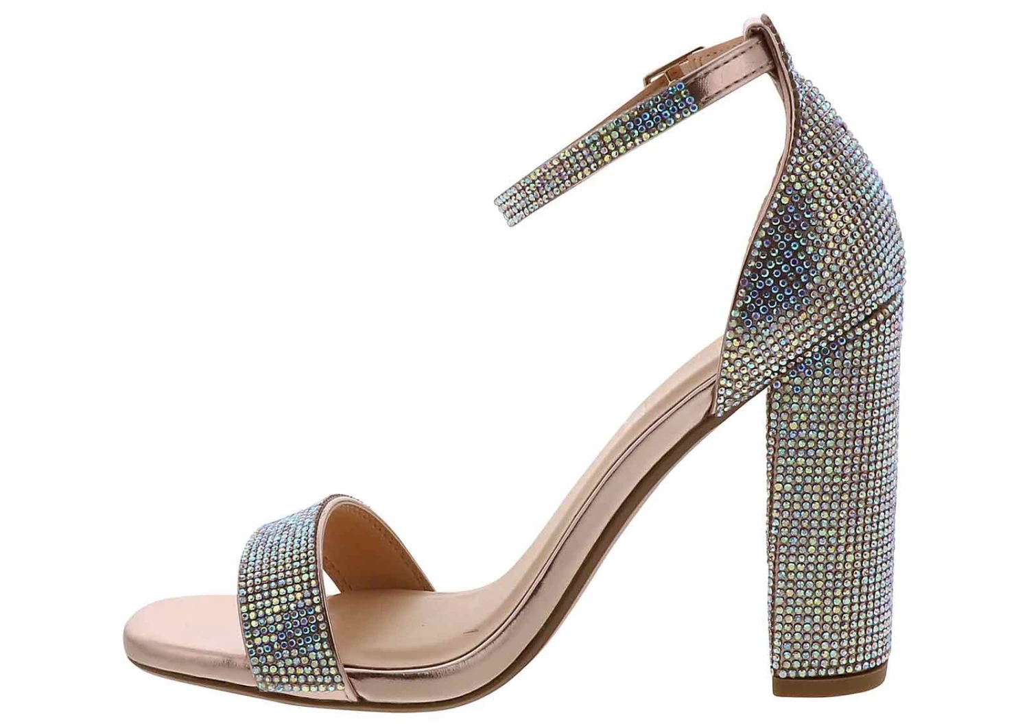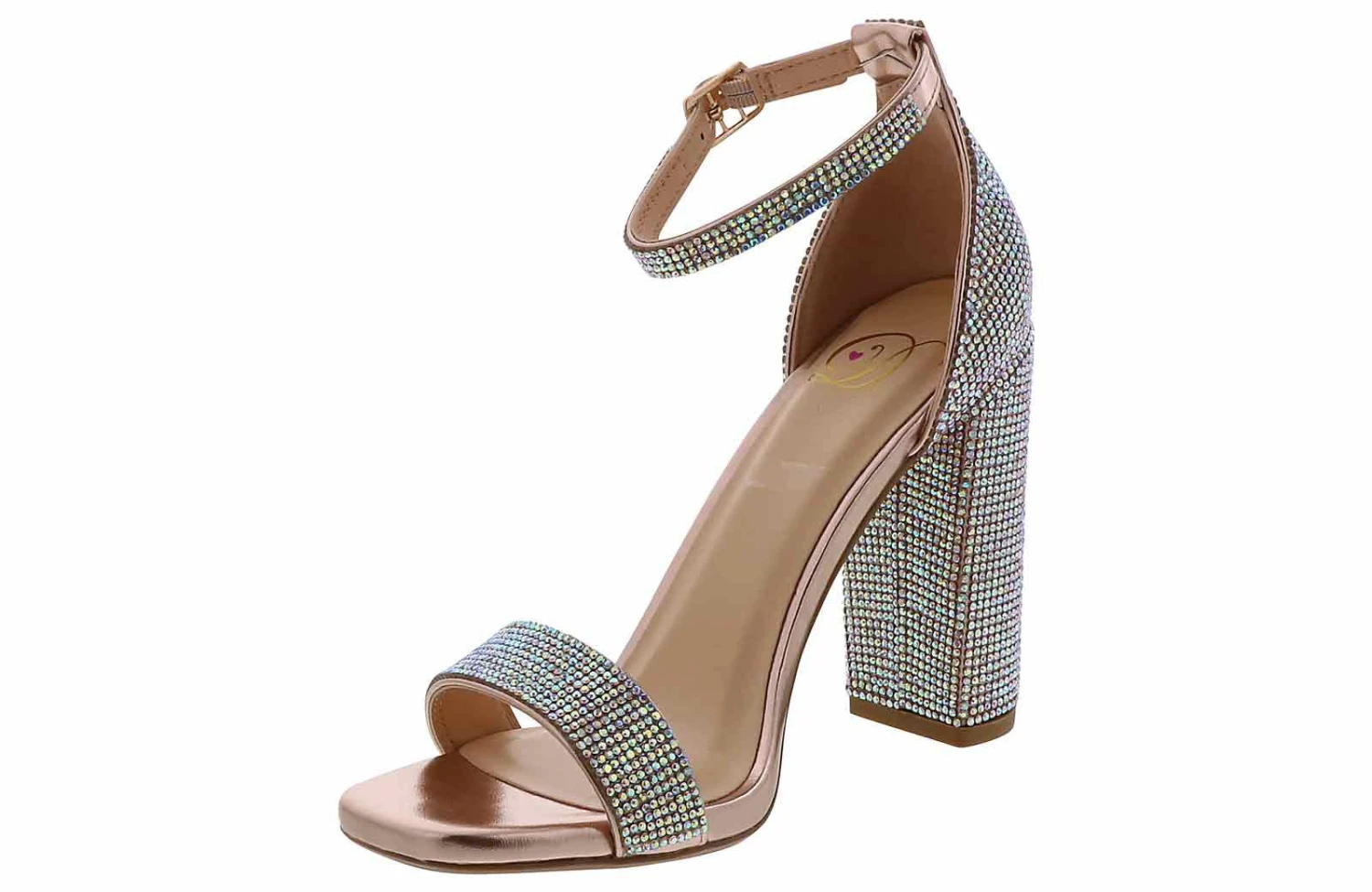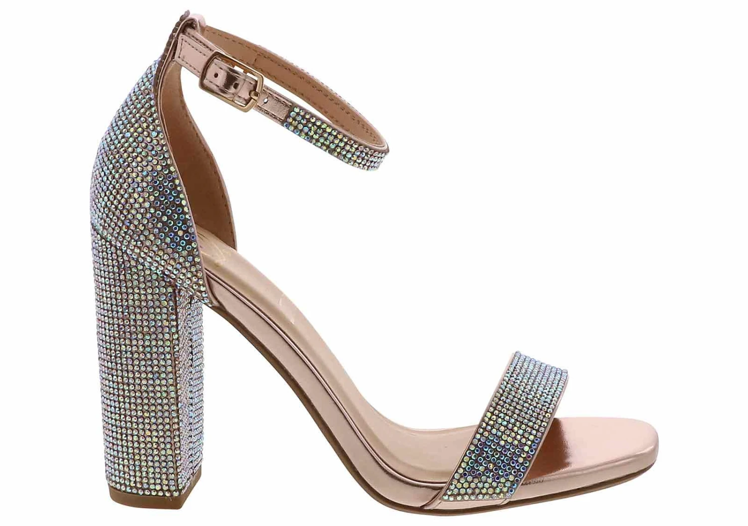 Sparkle through the night wearing the Heart in D Styles Penny Iridescent Women’s Fashion Heel! This three-inch heel features beautiful rhinestones and an adjustable buckle strap for a secure fit. The durable outsole and metallic shine provide sturdy stepping and great style when you wear the Heart in D Styles Penny Iridescent Women’s Fashion Heel!
