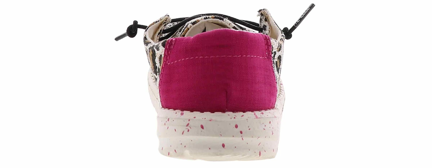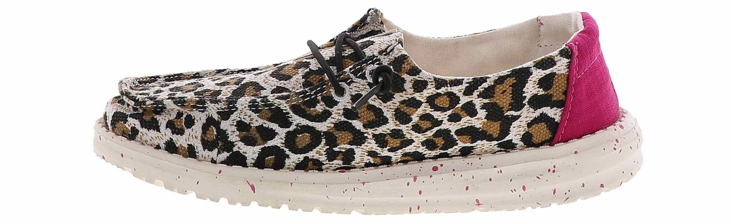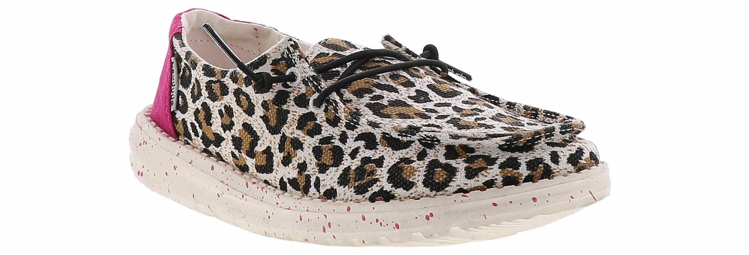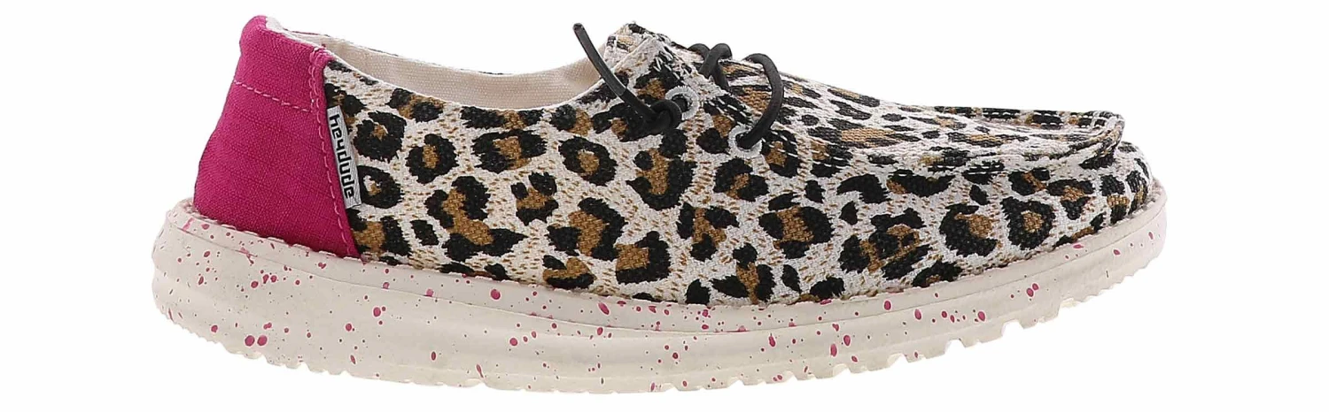 She will take a walk on the wild side in the Hey Dude Wendy Girls’ Casual Shoe. This sassy style is a classic Hey Dude shoe featuring the cheetah canvas upper, elastic laces, and cushioned insole. The EVA outsole makes this shoe super lightweight!