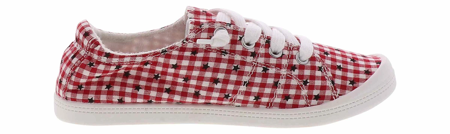 Complete your outfit for a fun occasion with the Jellypop Dallas Women’s Casual Shoe! Featuring a canvas upper, decorated with an all-over gingham print and star details. The cushioned insole and lightweight outsole provide comfortable and flexible support on all surfaces. Detailed to perfection, the Jellypop Dallas Women’s Casual Shoe is a fun and fashionable style that you will love!