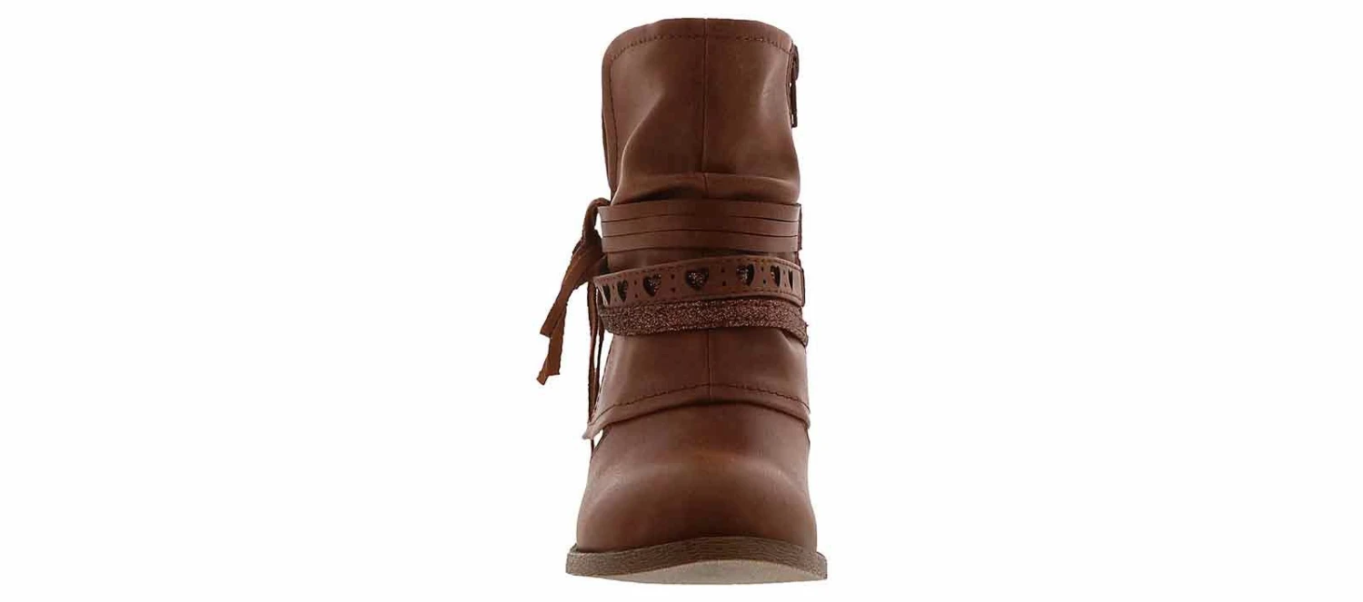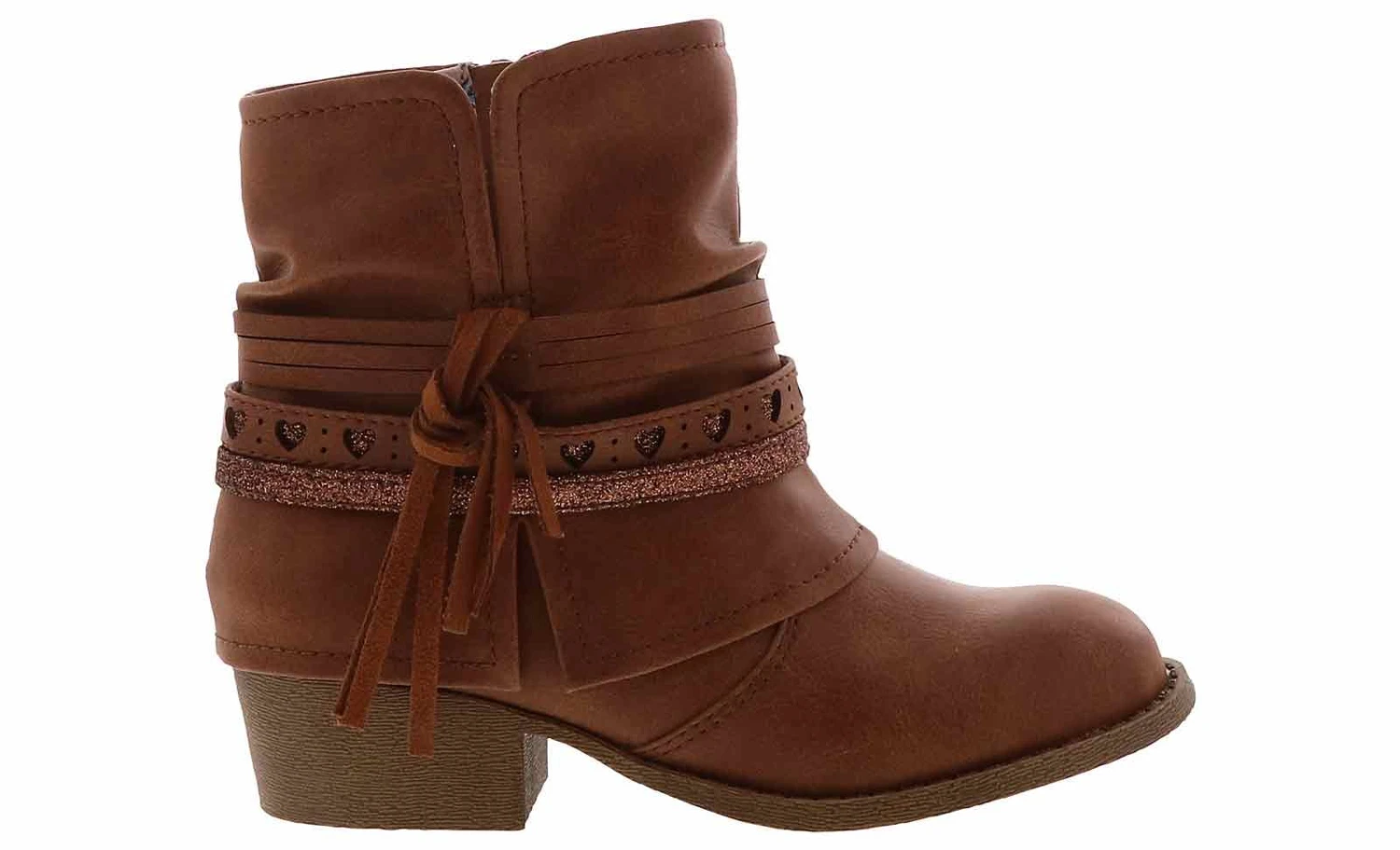 She will LOVE her Jellypop Love it Girls’ (13-5) Bootie! This synthetic leather upper with a wrap-around belt adds a chic look, while the side zipper makes for an easy and secure fit. The cushioned insole and rubber outsole bring all-day comfort and support. This style includes a 1.25-inch heel. She will feel unique, cozy, and stylish in her Jellypop Love it Girls’ (13-5) Bootie!