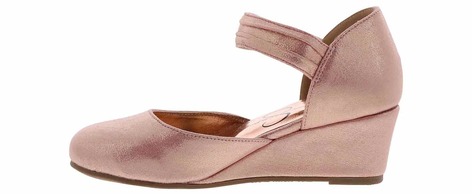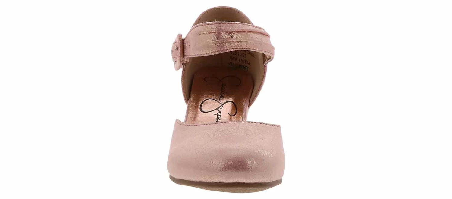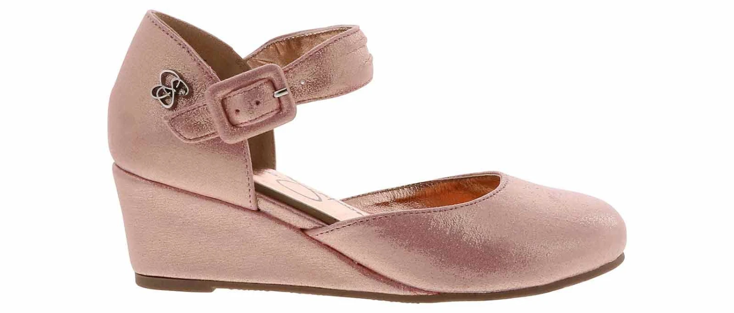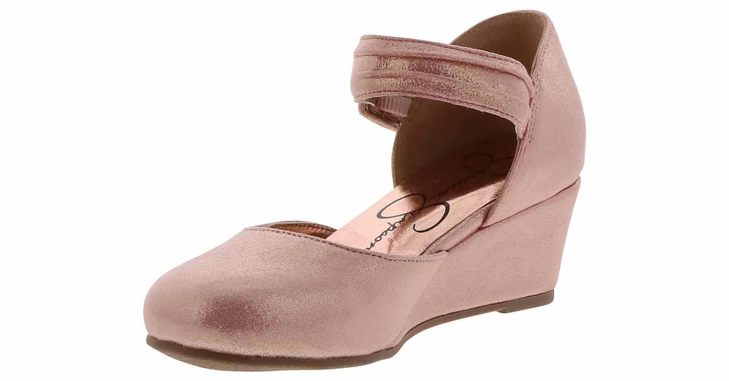 Watch your little one step out in style wearing the Jessica Simpson Tatiana Girls’ (11-5) Wedge Heel! This cute pink and rose gold wedge features an adjustable ankle strap and a cushioned footbed to keep her comfortable for the entire event. She will shimmer and shine when she wears the Jessica Simpson Tatiana Girls’ (11-5) Wedge Heel!