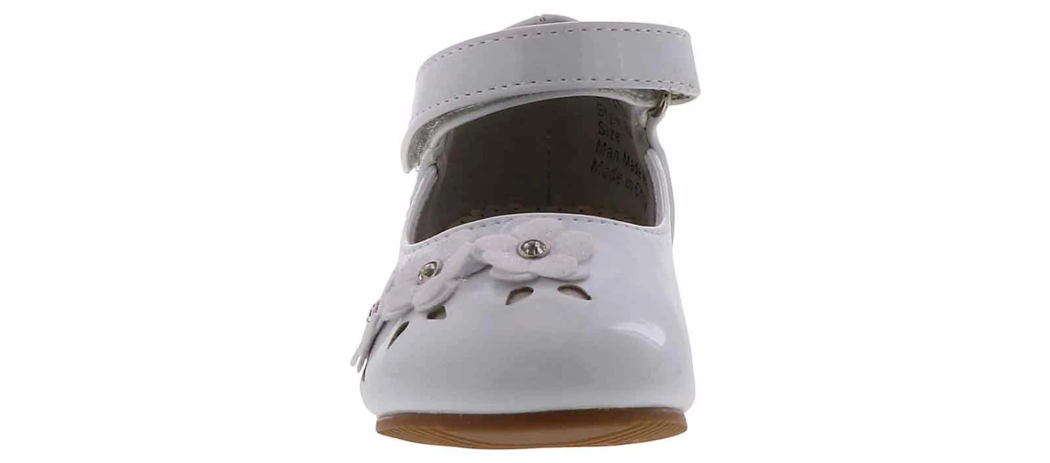 Check out the Josmo White Patent Floral Girls’ (7-12) Dress Heel for your sweet little one! With a beautiful floral design and a sturdy heel, these shoes are perfect for special occasions or dressing up any outfit. The easy hook-and-loop closure and cushioned footbed ensure security and comfort when she wears the Josmo White Patent Floral Girls’ (7-12) Dress Heel!