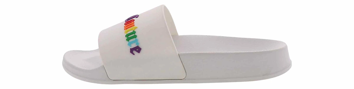 Stand out in the Juicy Couture Whimsey Women’s Slide! Featuring a fully manmade construction, this style is sleek with a rainbow twist. With a cushioned footbed and lightweight outsole, you can wear these almost anywhere. You will be reaching for the Juicy Couture Whimsey Women’s Slide all summer long!