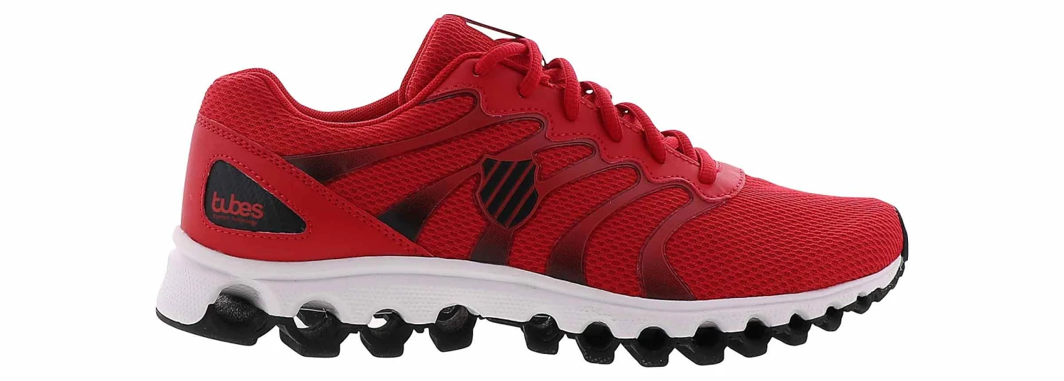 Reach maximum comfort wearing the K-Swiss Tubes Comfort 200 Men’s Running Shoe! The lightweight mesh upper delivers additional coolness and breathability. The cushioned insole and Ortholite sock liner will keep your foot secure, while the tuned tubed structures collapse and rebound as you walk. The rubber outsole is a great finish to provide incredible flexibility, making every stride smooth and efficient.