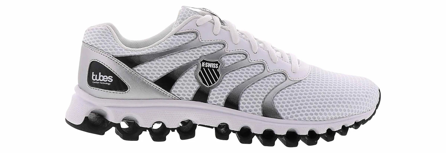 The K-Swiss Tubes Comfort 200 Men’s Wide-Width Running Shoe provides unmatched comfort and cushioning! The lightweight mesh upper delivers additional coolness and breathability. The cushioned insole and Ortholite sock liner will keep your foot secure, while the tuned tubed structures collapse and rebound as you walk. The rubber outsole is a great finish to providing incredible flexibility, making every stride smooth and efficient.