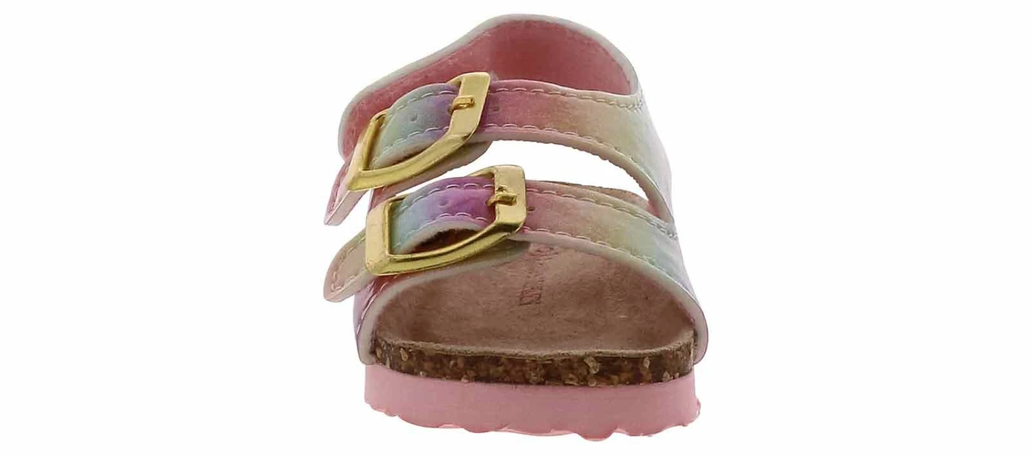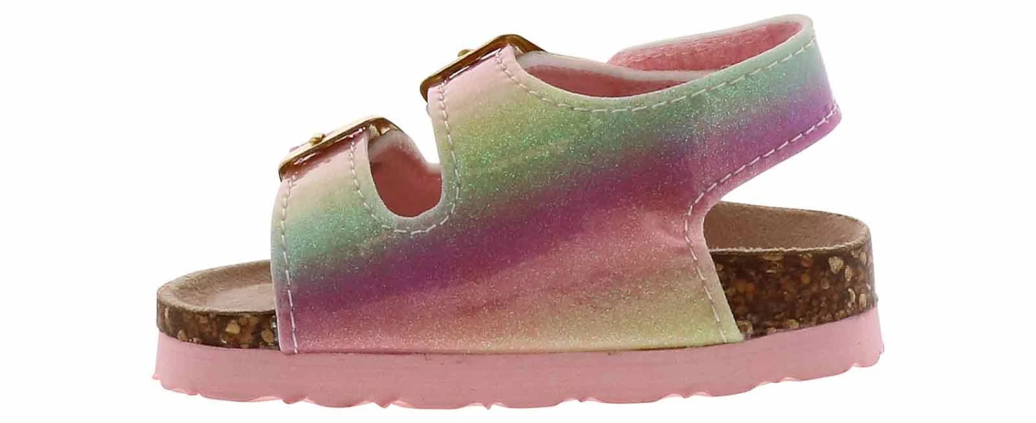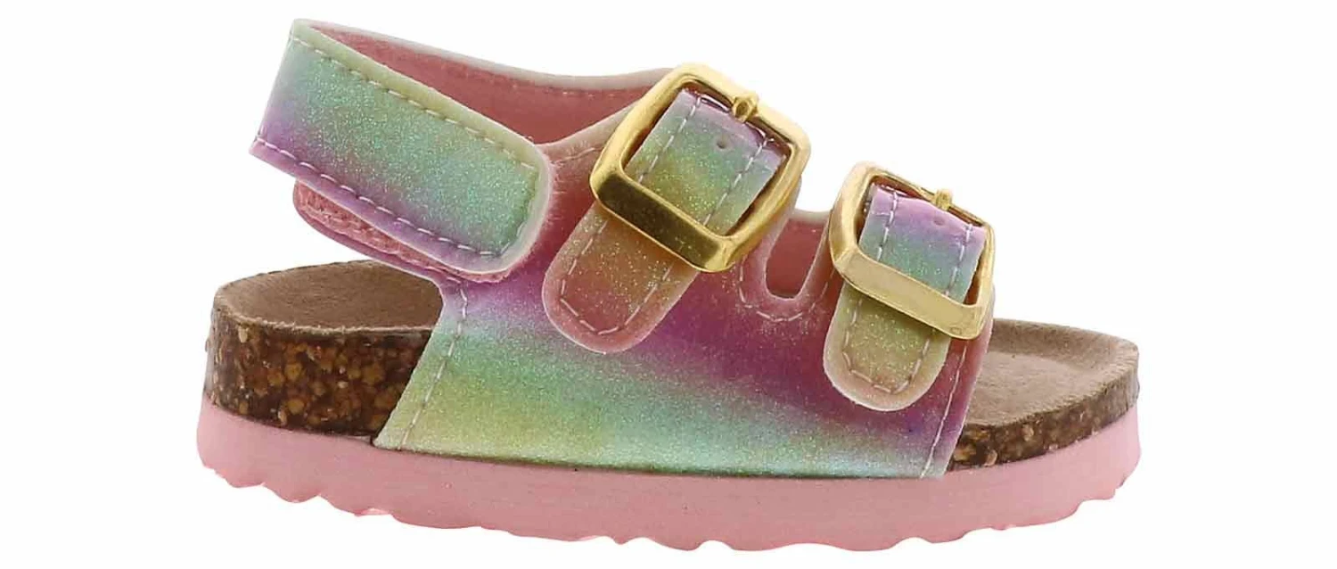 She will love the rainbow and glitter Laura Ashley Girls’ (2-4) Footbed Sandal! This multicolored pastel sandal features a hook-and-loop closure and two adjustable straps that keep her feet secure with every step. The comfortable footbed and lightweight outsole make the Laura Ashley Girls’ (2-4) Footbed Sandal a spring and summer favorite!