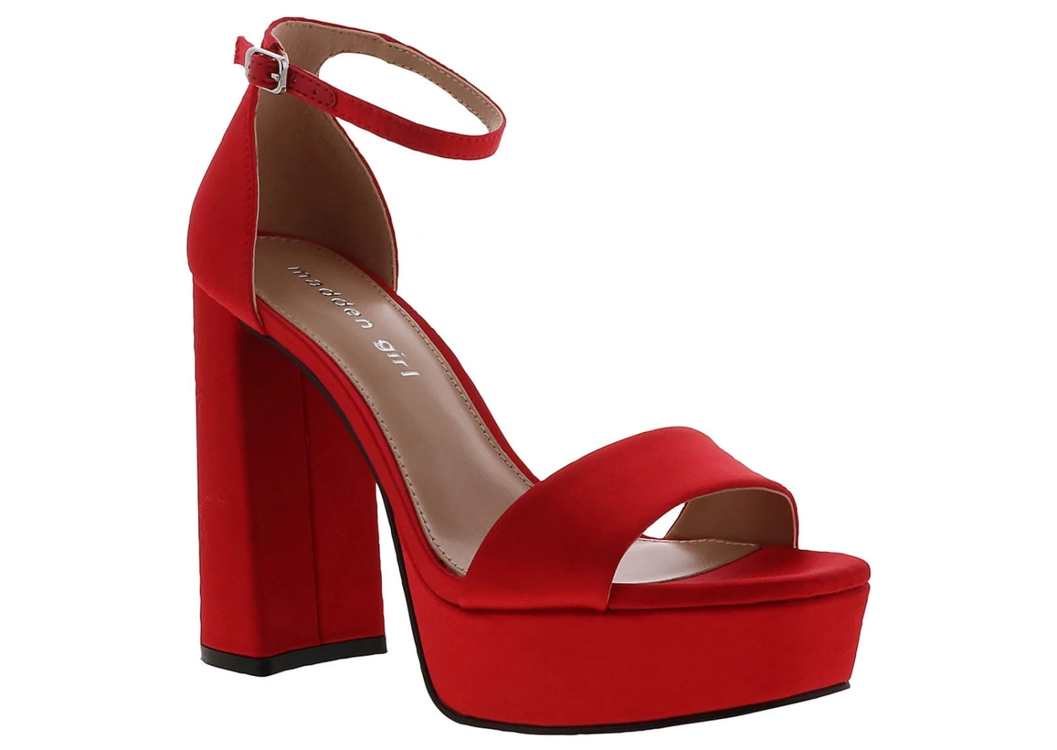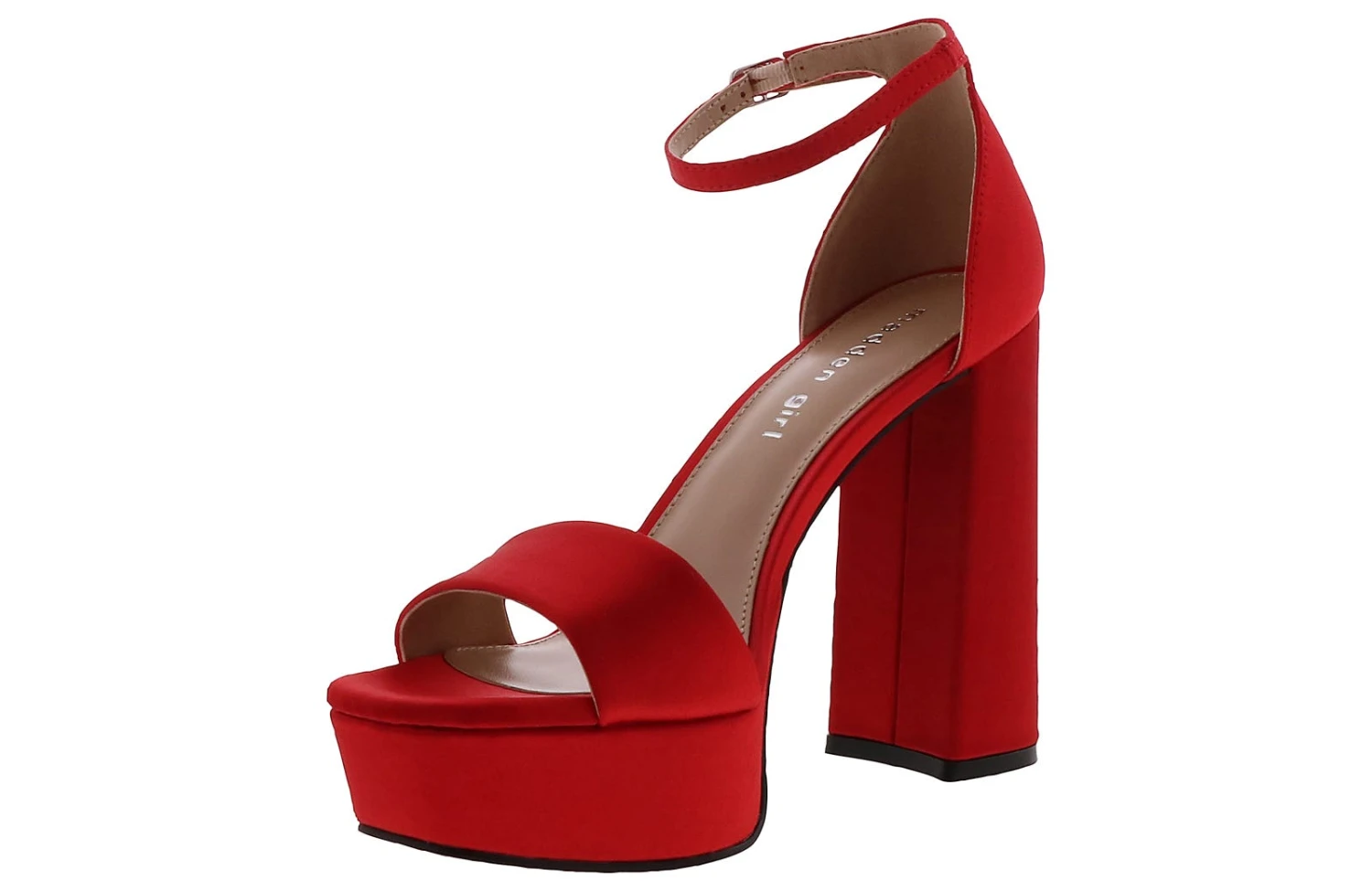 Step out boldly wearing the Madden Girl Omega Women’s Fashion Heel! This square open-toe heel features a 1.75-inch platform and a 4.5-inch block heel with an adjustable ankle-buckle closure. A red satin upper, cushioned footbed, and TPR outsole make the Madden Girl Omega Women’s Fashion Heel beyond lovable!