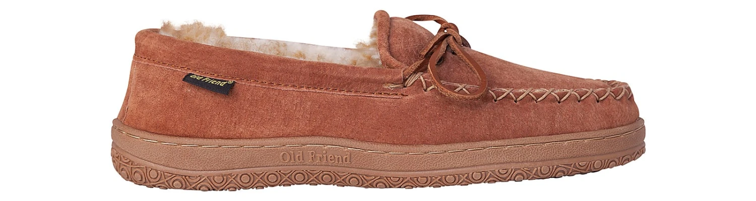 The Old Friend Loafer features distinctive stitching and cinch-tie with 100% sheepskin insoles. The raised toe provides extra toe freedom for improved comfort. This Loafer is hand stitched with cinch adjustable tie and cushioned midsole for a snug, comfortable fit. The removable/replaceable insole and rubber outsole ensure long wear.