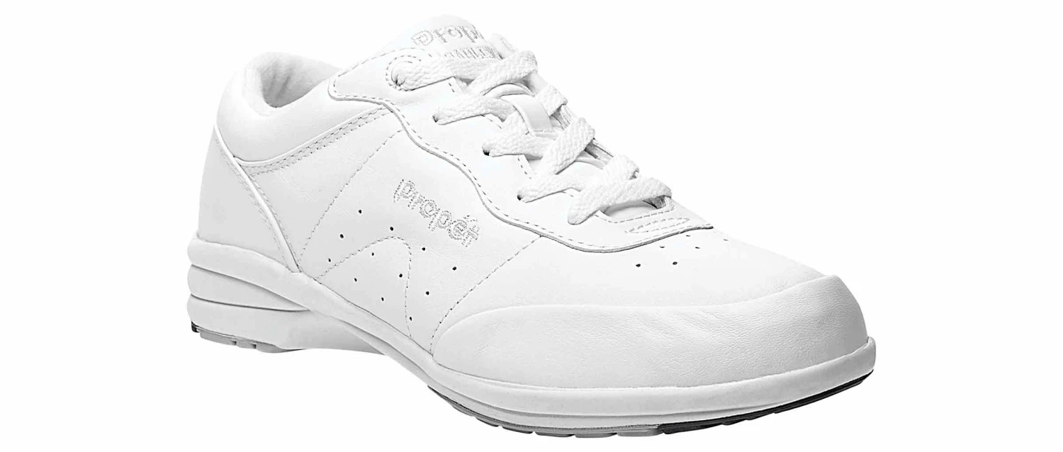 The Propert Washable Walker Women’s Sneaker has a machine washable leather upper with Nylex lining and padded collar and tongue. With breathable open cell faux foam that moves moisture from foot for a cooler, healthier footbed and a lightweight EVA midsole with slip resistant rubber outsole.