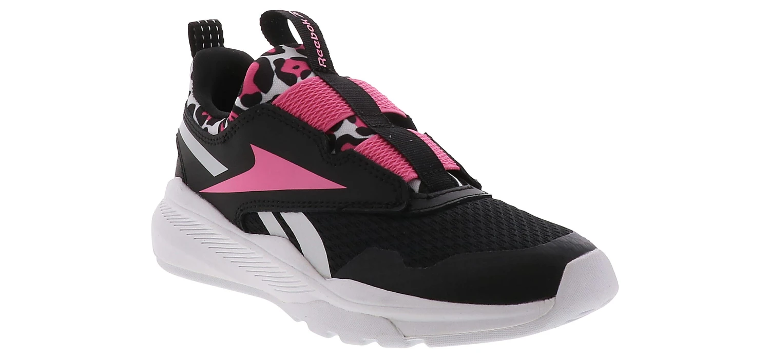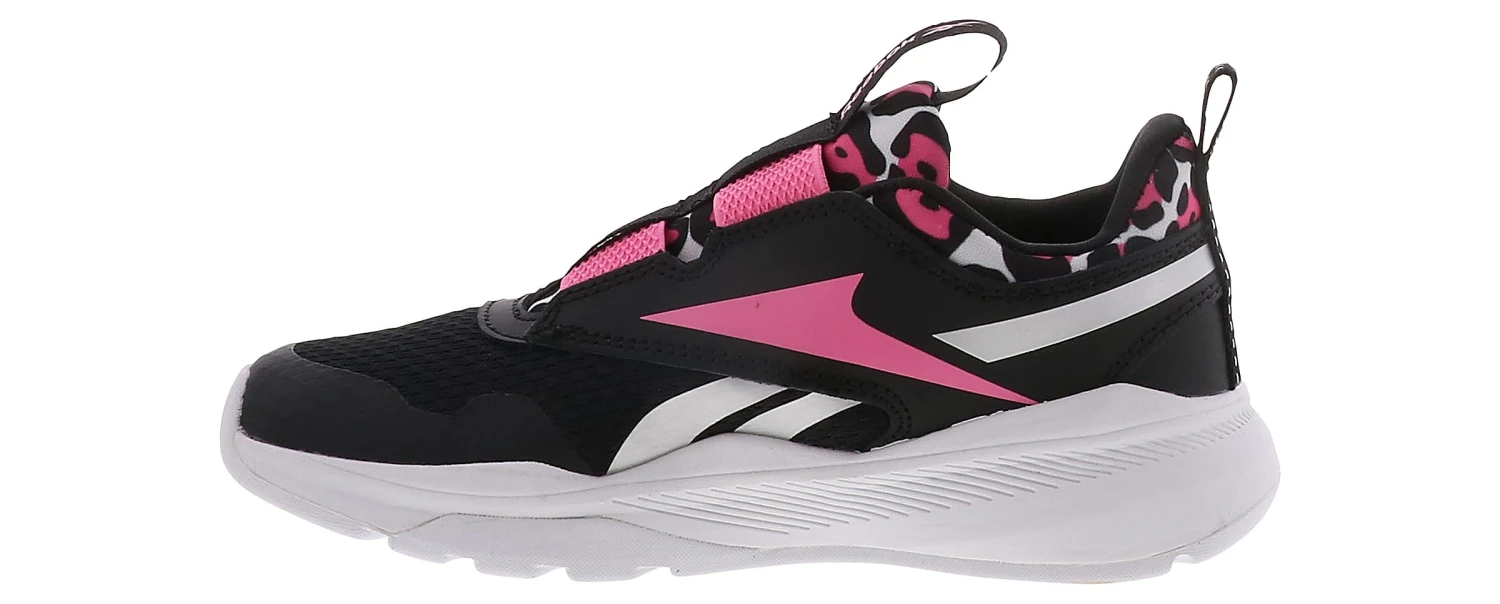 Reebok XT Sprinter Slip Girls’ (11-6) Running Shoe is a must have for running and style! This style features a colorful leopard tongue and a breathable mesh insole. The elastic straps make it easy for her to slip on and feel supported on the playground! She will be on the go all day wearing the Reebok XT Sprinter Slip Girls’ (11-6) Running Shoe!