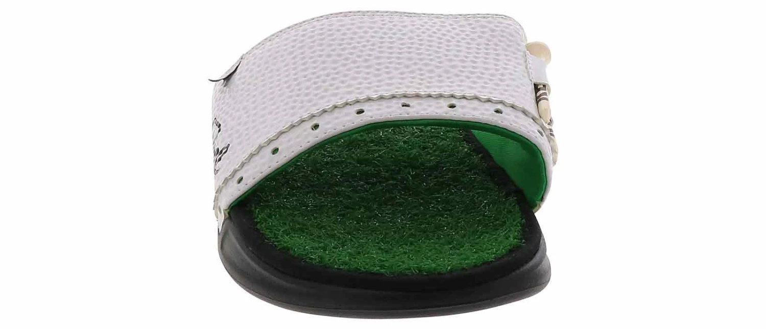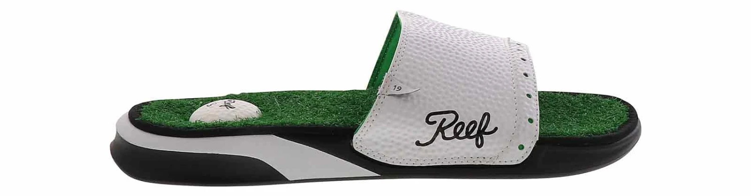 Tee up with the Reef Mulligan Slide Men’s Casual Sandal! This golf-themed slip-on style is a hole-in-one with its built-in tee and golf ball heel pad. The faux grass footbed is like being on the green all day, while the mesh lining and lightweight outsole provide breathability and ease in every step. Celebrate after your round wearing the Reef Mulligan Slide Men’s Casual Sandal!