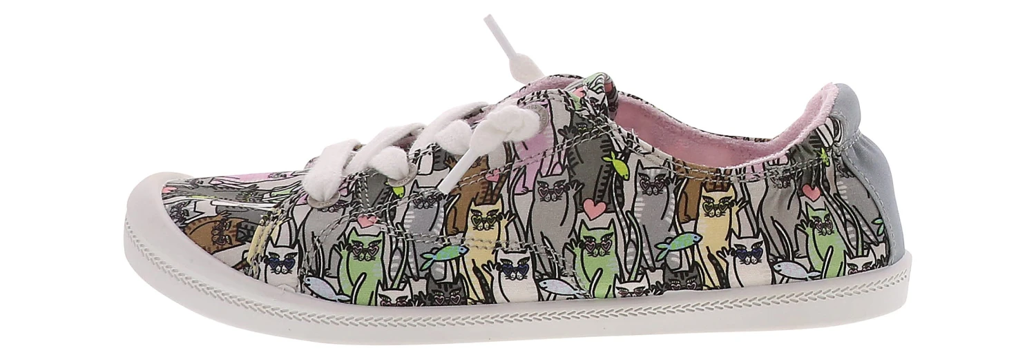 The Skechers Bobs Beach Bingo Kitten Bitten Women’s Casual Shoe is the perfect sneaker for cat lovers! This style has a canvas upper and is detailed with all-over kitten accents. The adjustable laces are accustomed to your comfort, while the cushioned insole and flexible outsole provide padding and support. You will love wearing the Skechers Bobs Beach Bingo Kitten Bitten Women’s Casual Shoe on a cool and casual day!