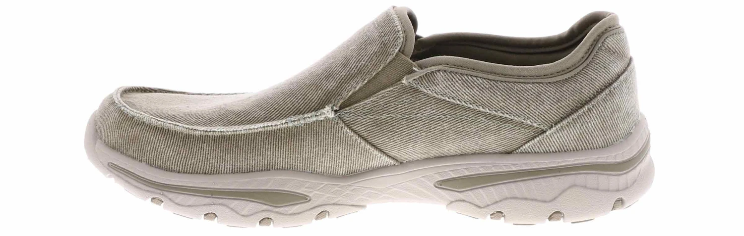 Canvas means comfort and laid-back cool style with these Skechers Creston Moseco loafers. This style features a soft woven canvas upper wtih dual elasticized gores and a padded collar for comfort. The Skechers Creston Moseco loafers have a Relaxed Fit design and an Air Cooled Memory Foam insole.