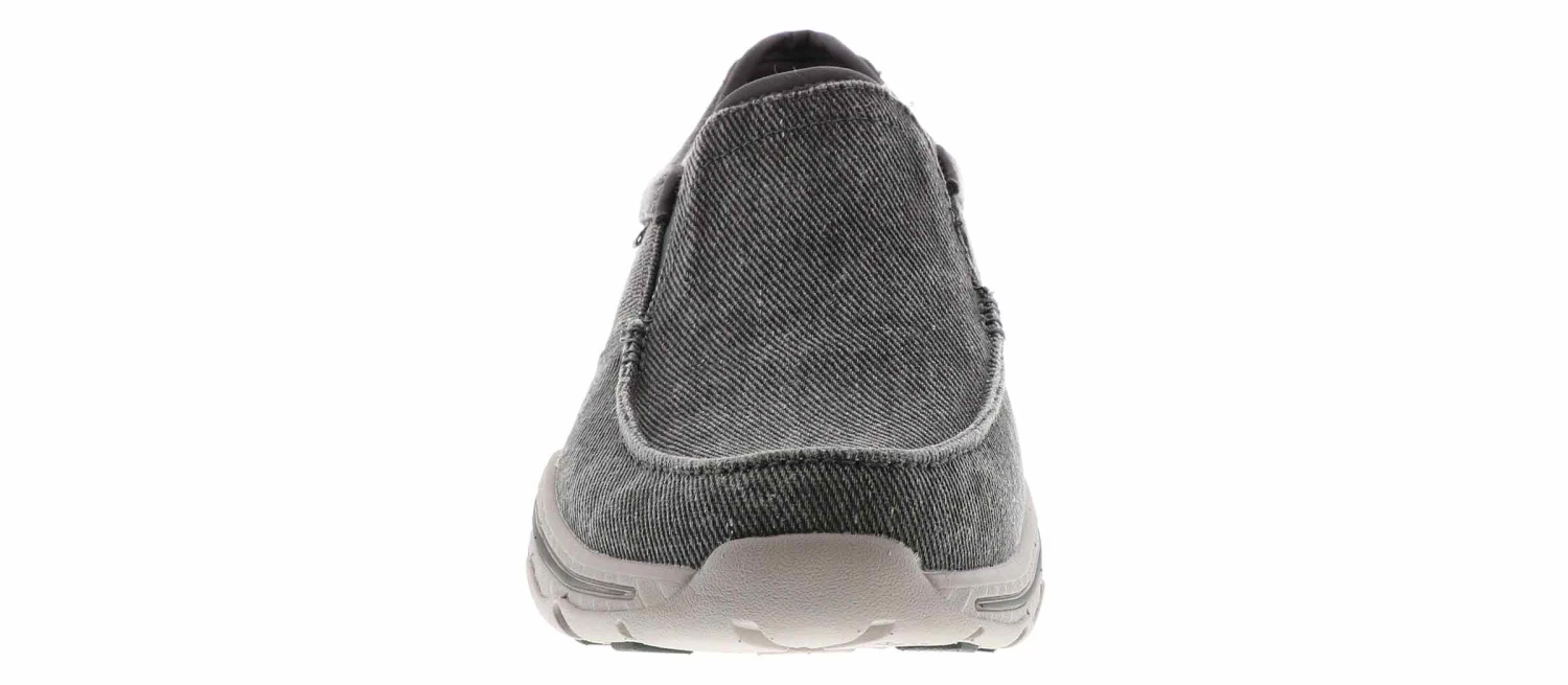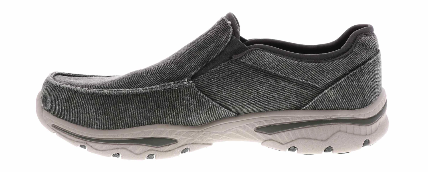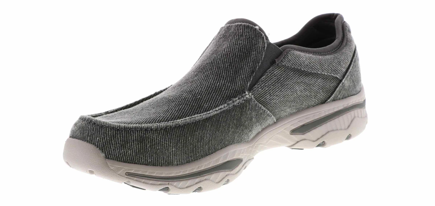 Canvas means comfort and laid-back cool style with these Skechers Creston Moseco loafers. This style features a soft woven canvas upper wtih dual elasticized gores and a padded collar for comfort. The Skechers Creston Moseco loafers have a Relaxed Fit design and an Air Cooled Memory Foam insole.