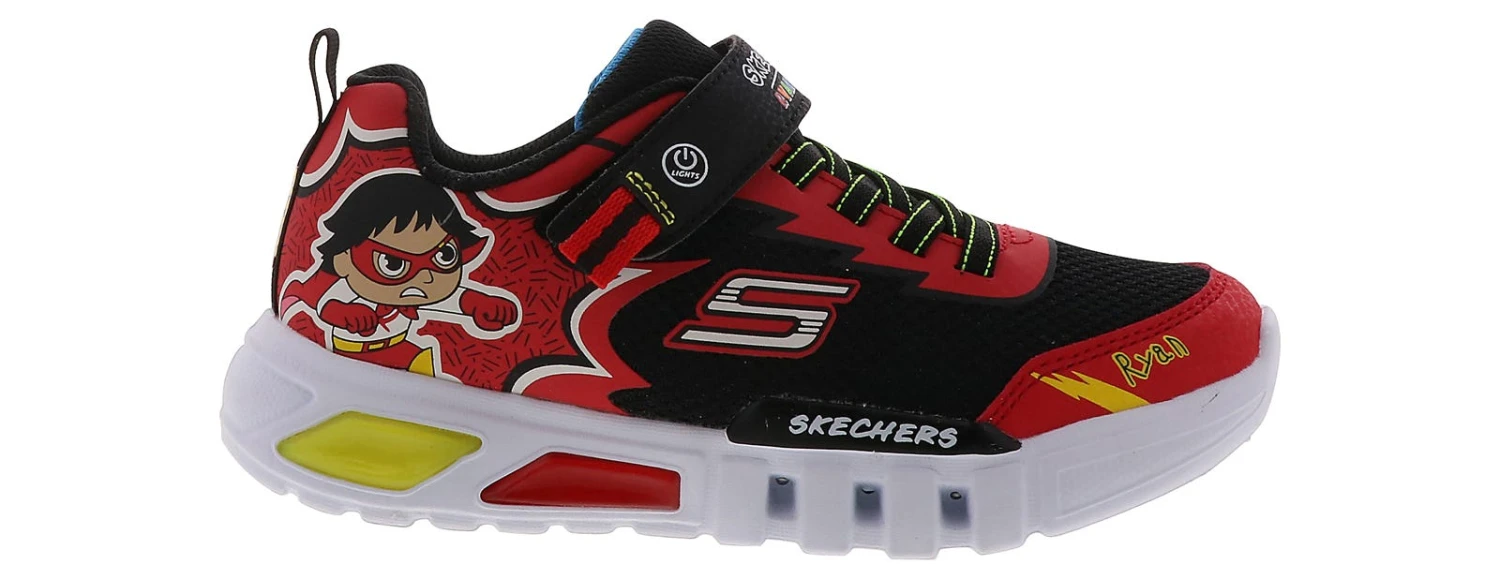 The Skechers Flex Flow Ryan’s World Boys’ (11-2) Running Shoe is the perfect shoe for your active one. This shoe is designed with light-up effects. The durable outsole has grip and rebounds while walking. This style is flexible making every step efficient and smooth. The mesh upper is lightweight and breathable. This shoe has the famous “Red Titan” that him and his friends would love. The Skechers Flex Flow Ryan’s World Boys’ (11-2) Running Shoe will be his favorite shoe!