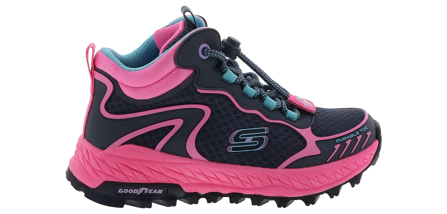 Trek through the day with the Skechers Fuse Tread Girls’ (1-6) Trail Shoe! This water-repellent sneaker boot features adjustable laces and a leather upper. The cushioned insole will bring her comfort like no other, while the durable Goodyear performance outsole delivers enhanced traction, stability, and durability. The mid-top design and padded collar will protect her ankles and cushion her step. She will love the Skechers Fuse Tread Girls’ (1-6) Trail Shoe!