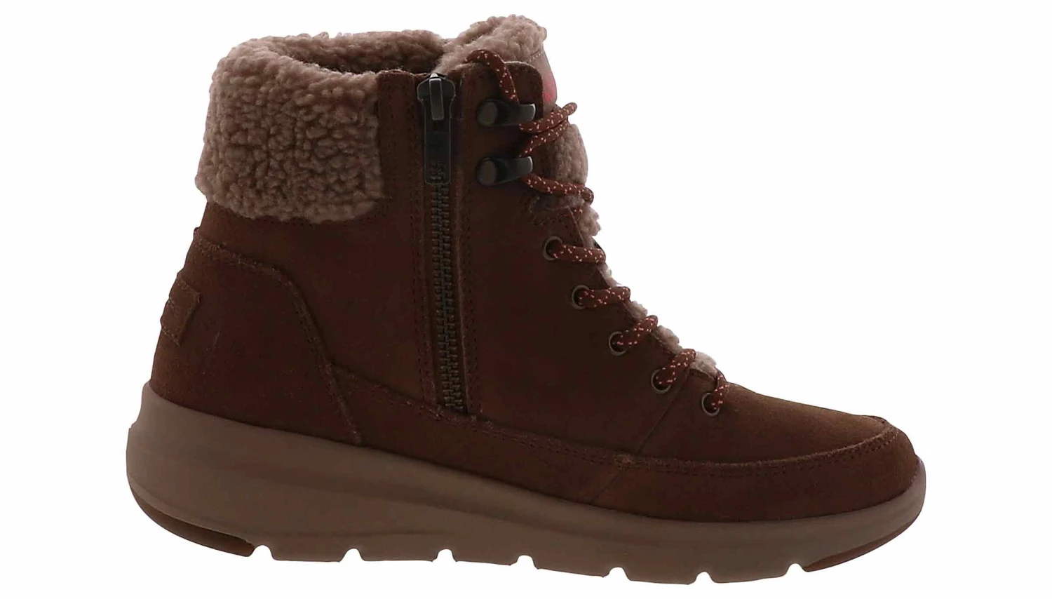 Stay cozy on the go wearing Skechers Glacial Ultra Women’s Fashion Boot! This casual style features a suede upper with soft Sherpa lining. The Air-Cooled Goga Mat insole and cushioned Ultra-Go midsole will give padding and extra cushion for a comfortable fit. The durable rubber outsole adds traction for any surface. Take on any adventure with the Skechers Glacial Ultra Women’s Fashion Boot!