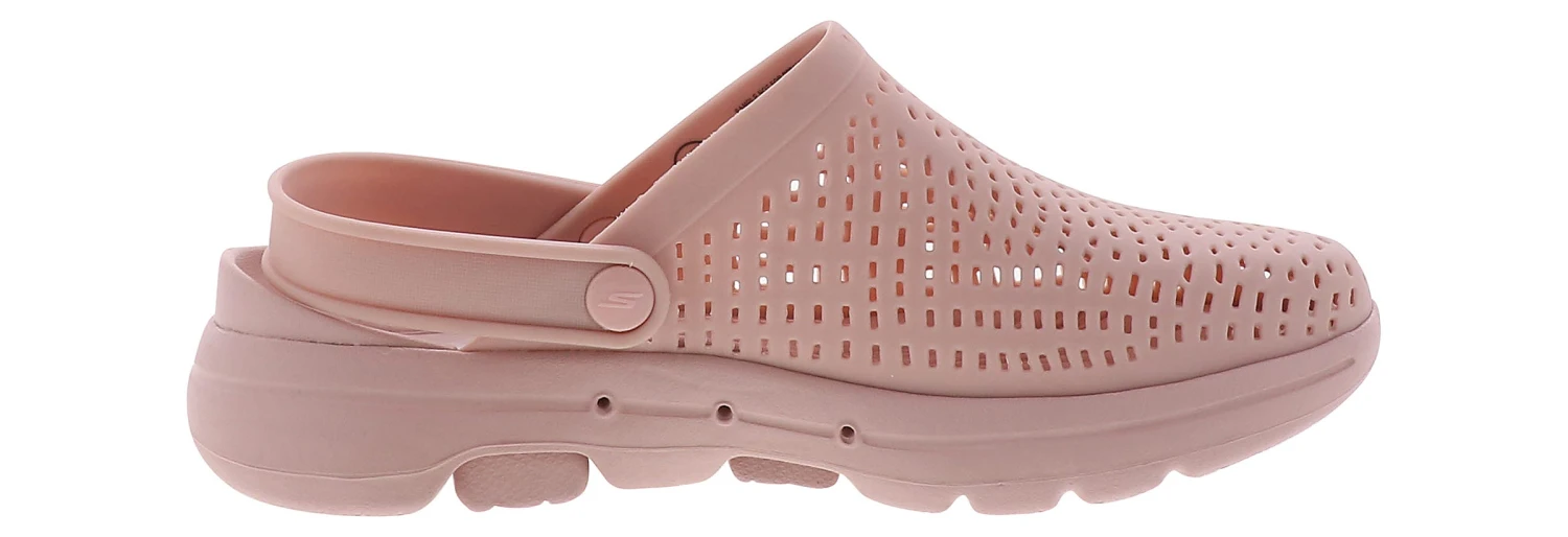Stay comfortable and breathable wherever you go wearing the Skechers Go Walk 5 Women’s Clog! This slip-on features an EVA upper with holes for ventilation and a rotating heel strap for extra support. The Skechers Foamies footbed delivers soft cushioning, while the ULTRA GO outsole provides traction and support on all surfaces. Walk the distance with comfort and style wearing the Skechers Go Walk 5 Women’s Clog!